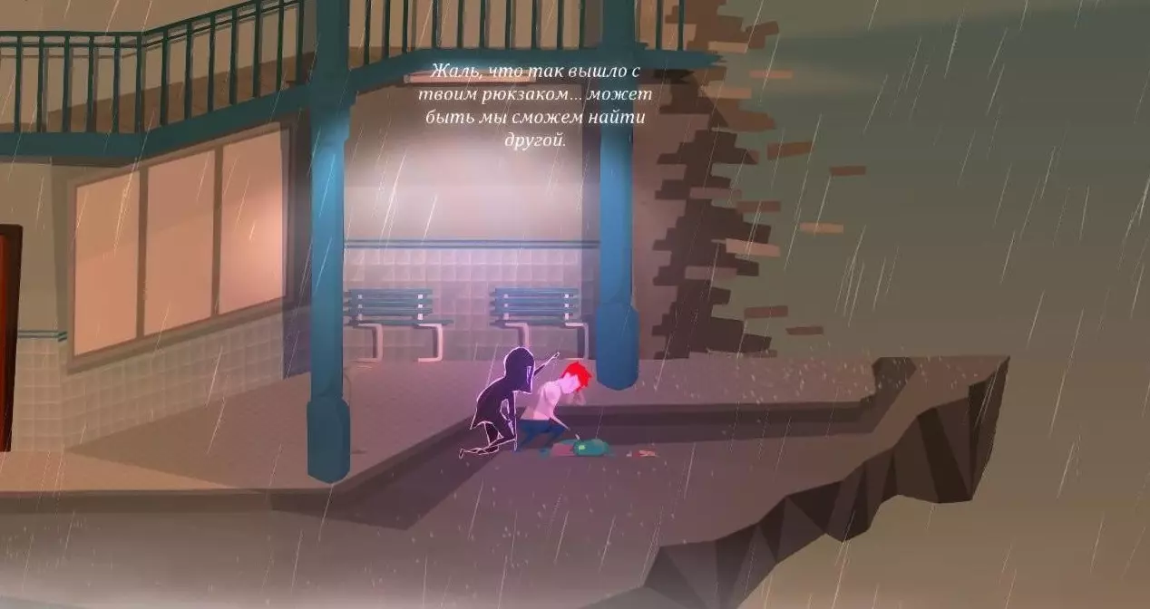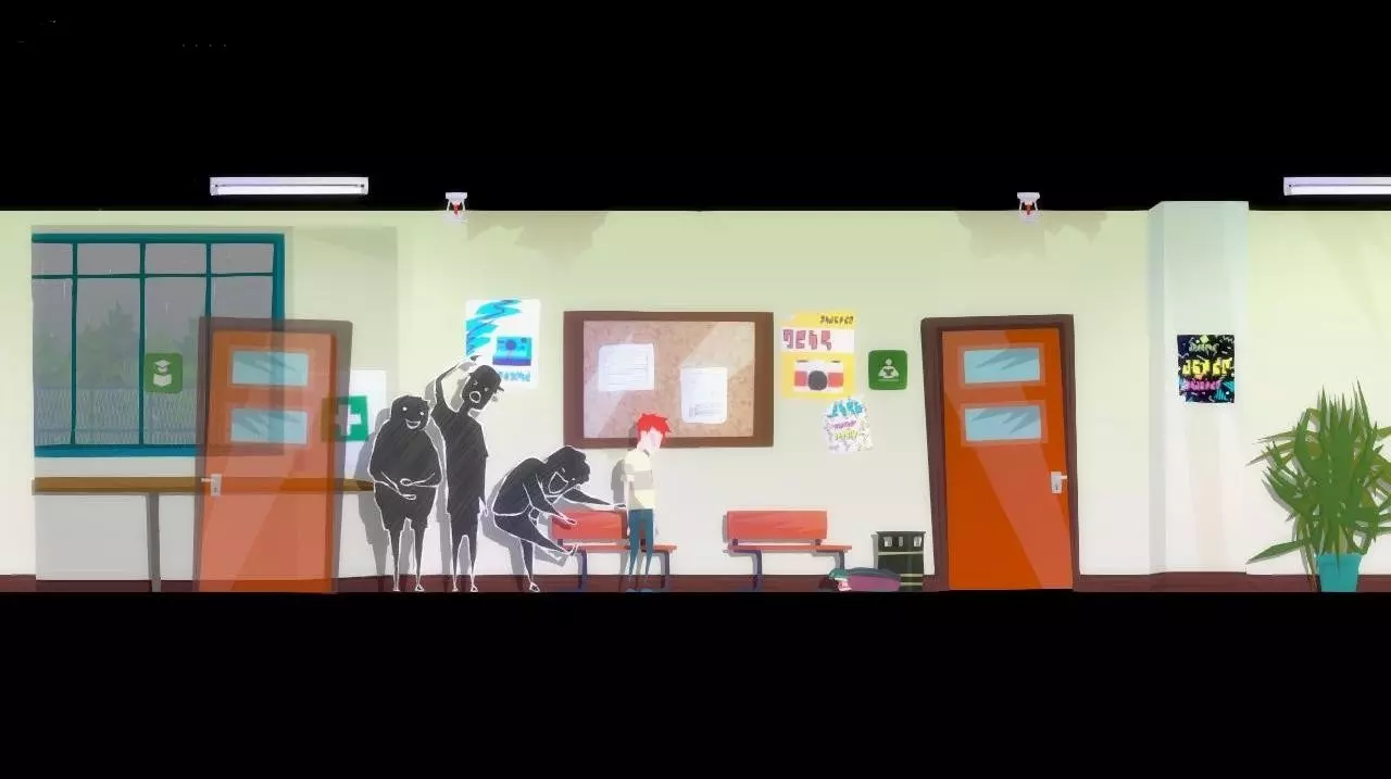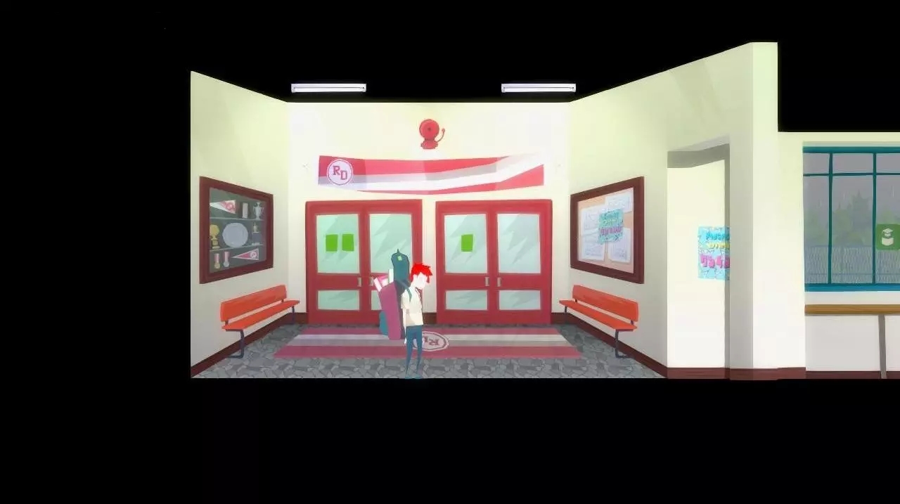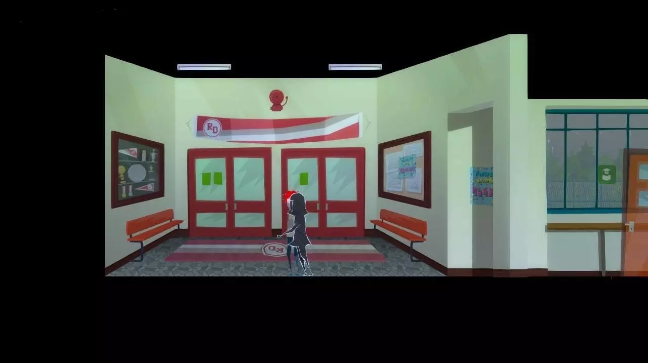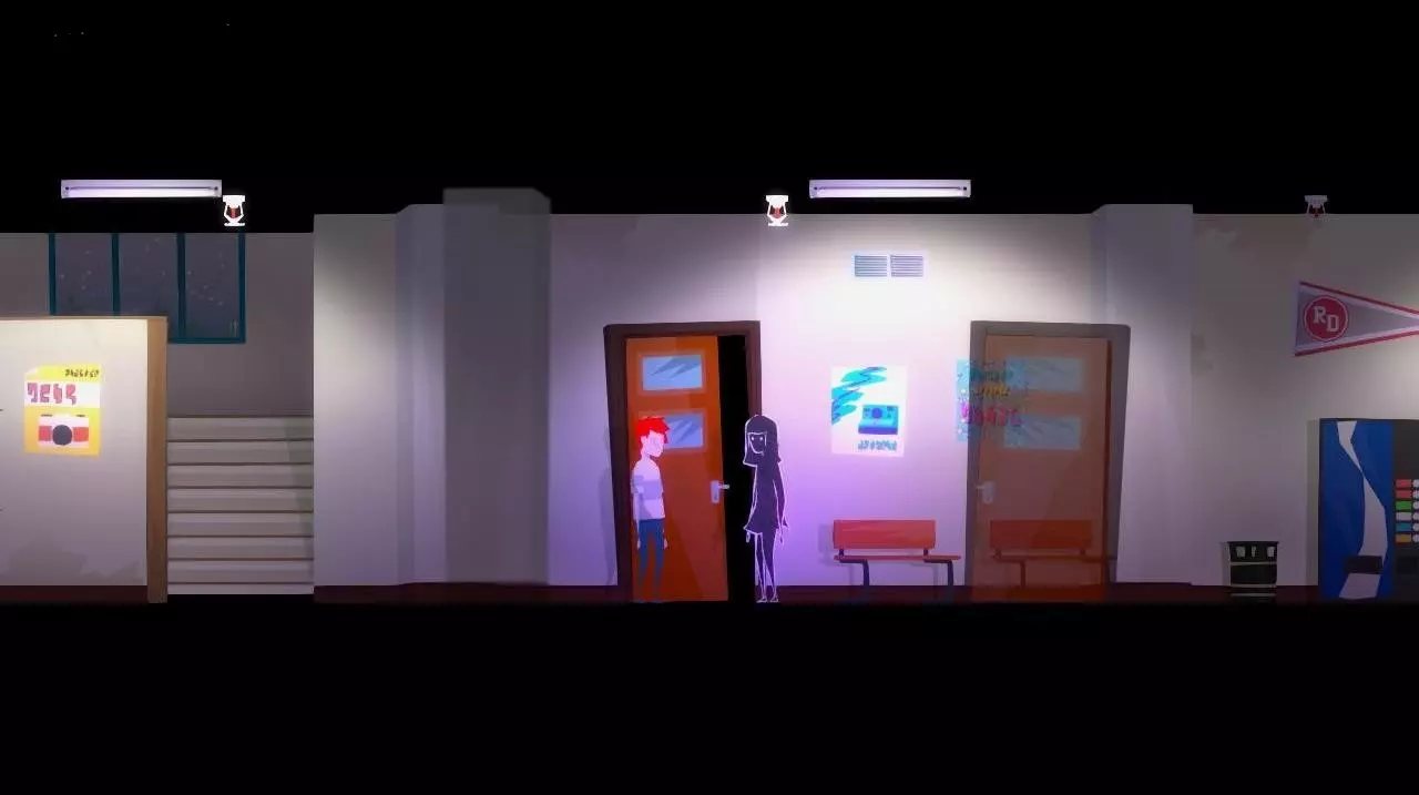 我们发现一个躺在水洼里的背包。一个女孩幽灵(同学?)向角色俯身,对他表示同情,并建议寻找另一个背包。我们返回学校。 重要提示:黄昏时分,学校走廊里游荡着【怪物】,遇到它会导致游戏从教师办公室重新开始,但会保留游戏进度。为了在建筑内无障碍移动,遇到【怪物】时我们必须持有【大厅门票】。可以找到三张这样的票: 在教师办公室的下层书架上 在教室监控摄像头下方 在二楼敞开的柜子里(靠近摄影工作室入口)
