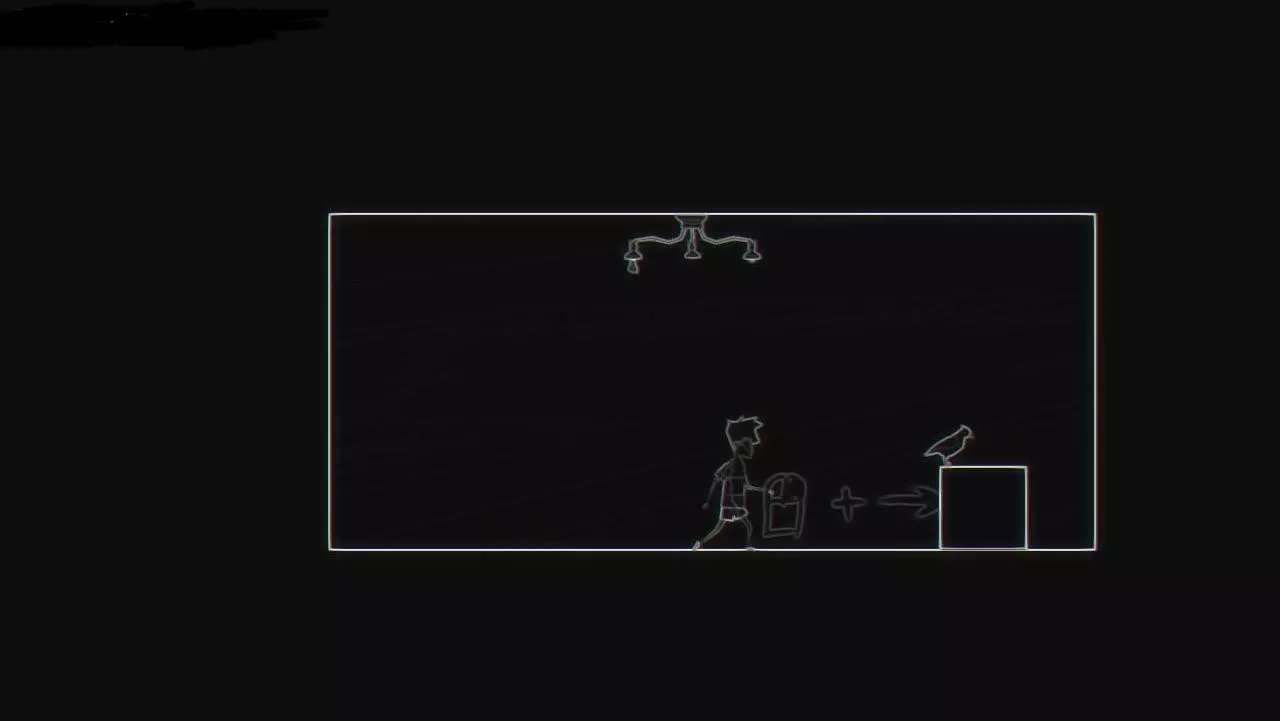 靠近那个上面坐着乌鸦的立方体(我们靠近时鸟儿会飞走)。向右移动立方体(D键+右键)。进入黑暗区域后,向右移动(D键)。