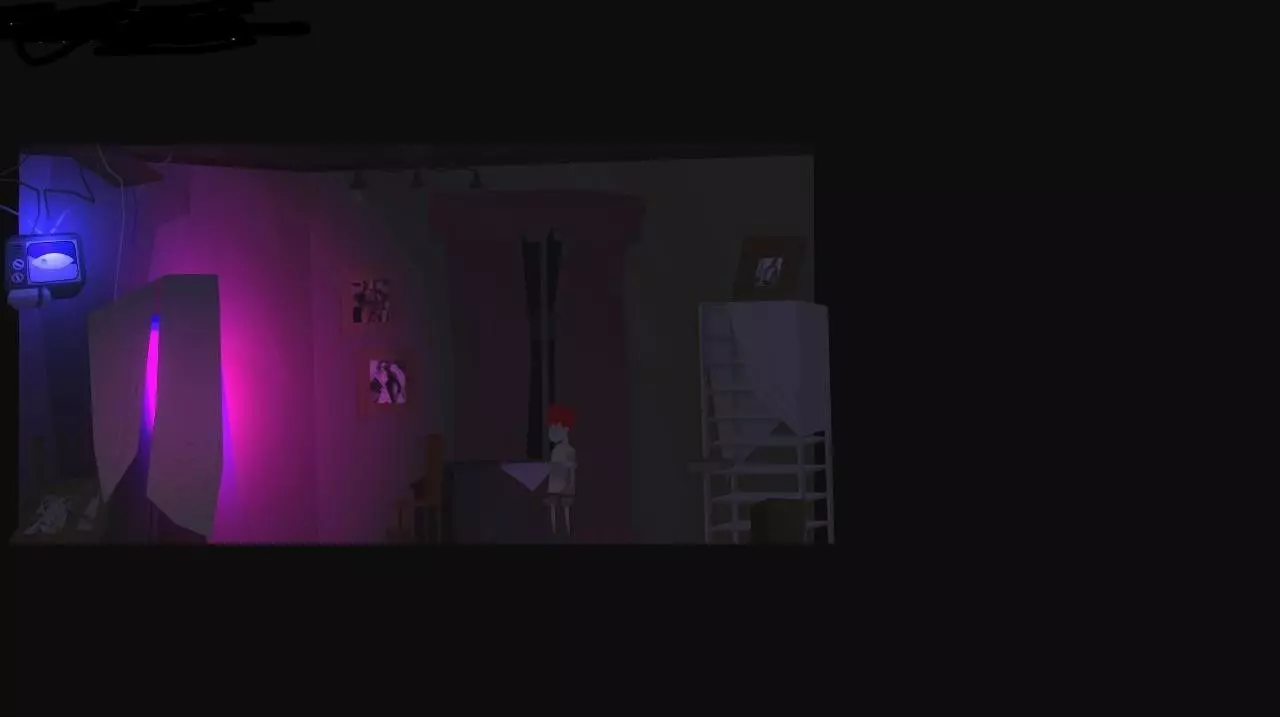 发现衣柜里的外星人。从外星人那里拿到新的RGB系统(外星人消失了)。退出当前视角,靠近电视。将RGB系统连接到电视上。把左边的椅子搬到电视旁的桌子边。