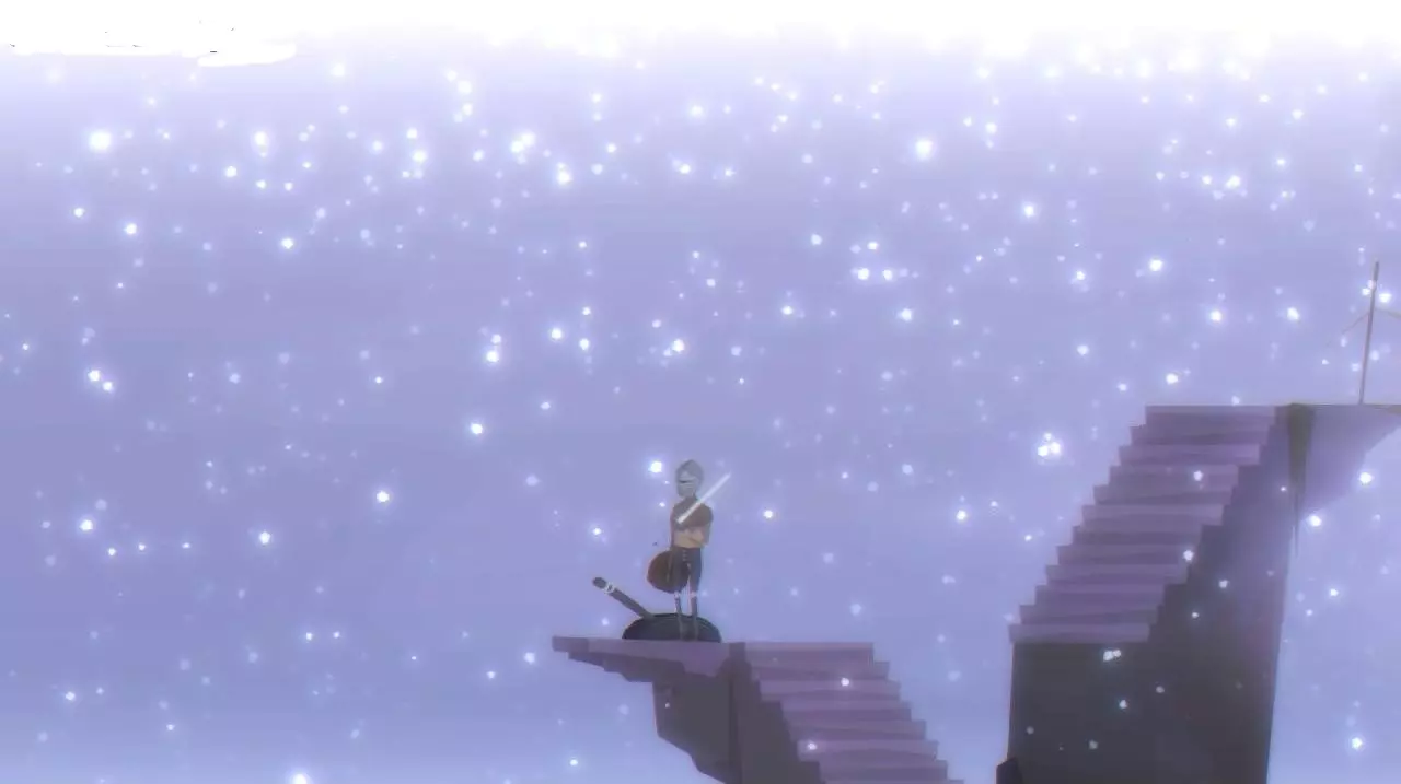 沿着楼梯上到屋顶。向左走。站到屋顶边缘。传送门中出现一名身着盔甲的骑士。 拿起骑士带来的剑,跟随他进入传送门。 化身骑士完成带有平台跳跃元素的街机关卡。 游戏通关。恭喜你。