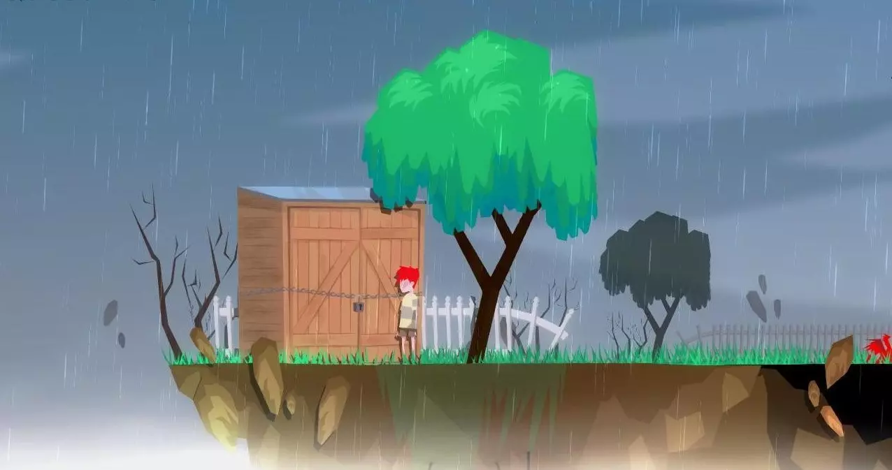 向右走,推开箱子。拿起汽油桶。回到棚屋,给割草机加油。推动割草机向右(鼠标右键+D键),割草。刚与院子中央的树对齐,就出现了一个带螺旋桨的机械怪物,它开始吸收周围的所有物体。尝试逃离它(A+Shift),同时注意不要被怪物扔出的橙色高温坠落物砸中。当靠近可抓取物品时(会出现“E”图标),按下E键。之后我们的角色会抓起物品并将其扔向怪物的螺旋桨。在三次精准命中后(每次都必须精准),怪物就会被击败。返回房屋。