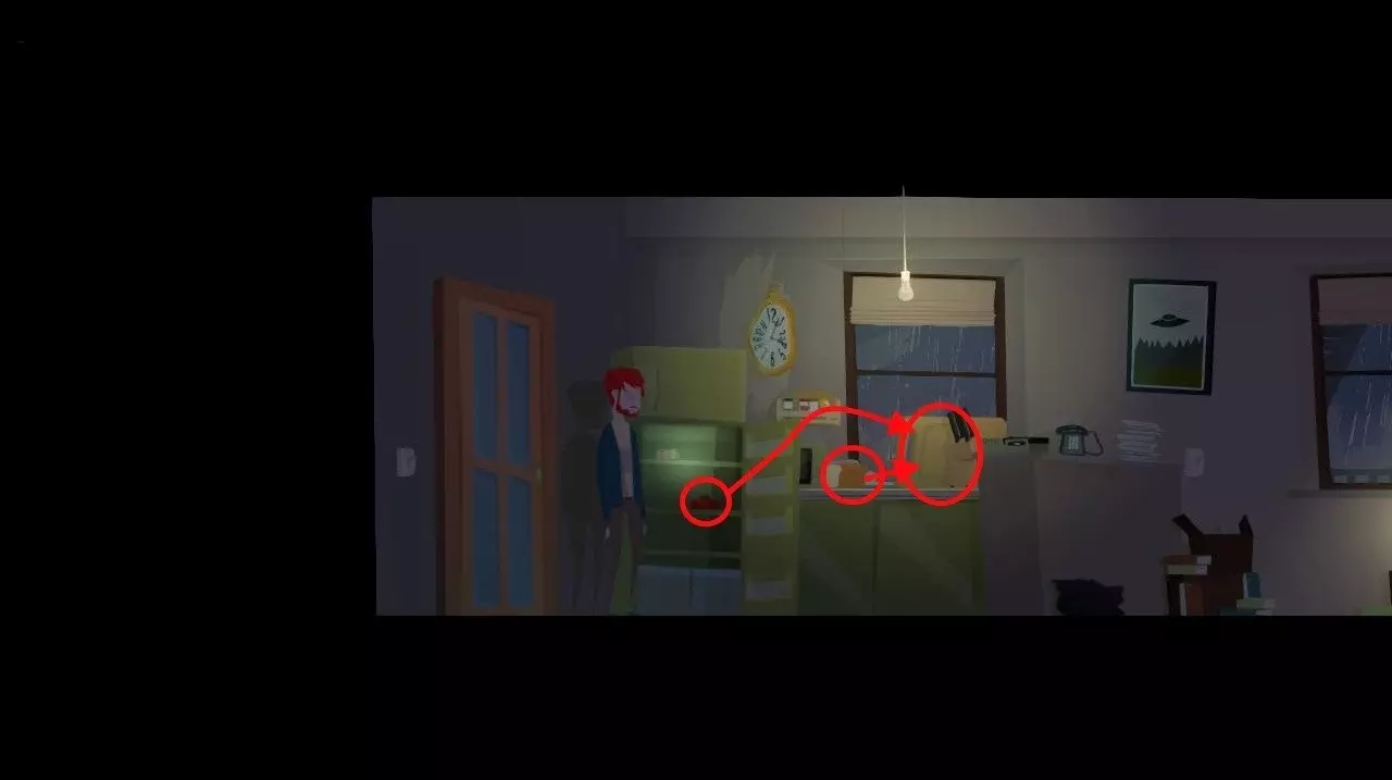 进入洞穴。 重要提示: 1. 由于游戏仅支持自动保存,若中途中断游戏进程,将需从章节初始阶段重新开始。 2. 游戏内昼夜会不断交替。白天进行探索不受任何阻碍,而夜晚时,一种蜘蛛状生物会在房屋内游荡,并且会“吞噬”电灯的电力。一旦电灯的电力被吞噬,该灯具将无法再次点亮。 3.在夜间可以继续探索。这种情况下,需要尽量避免与生物相遇,因为这会给主角带来悲惨的结局,并且需要从角色的房间重新开始游戏。不过此时游戏进度会被保存。