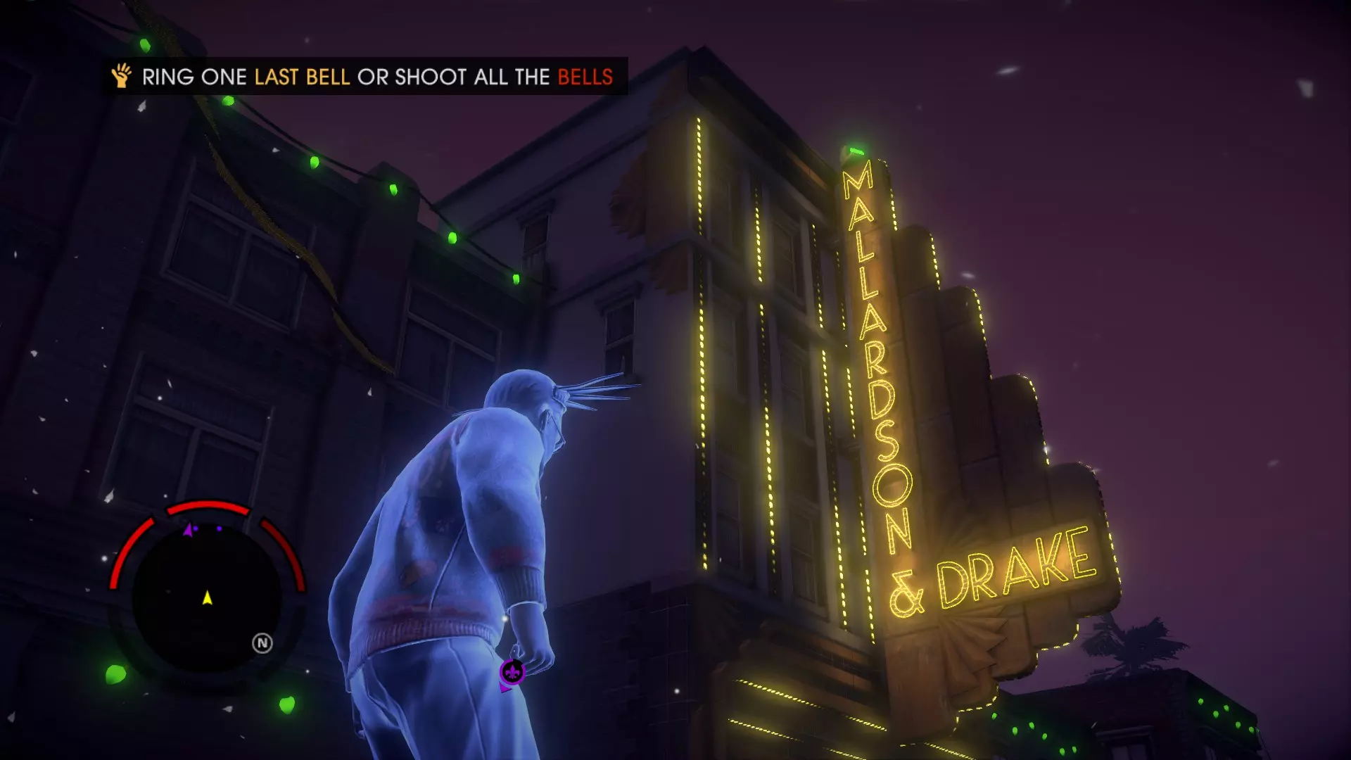 黑道圣徒4:连任 成就【A Saint Gets a Gun】获取方法 在任务【三号街的奇迹】中敲响镇上所有的钟。敲响部分钟后任务会继续推进,但如果想获得该成就,请确保敲响所有标记出来的剩余的钟。
