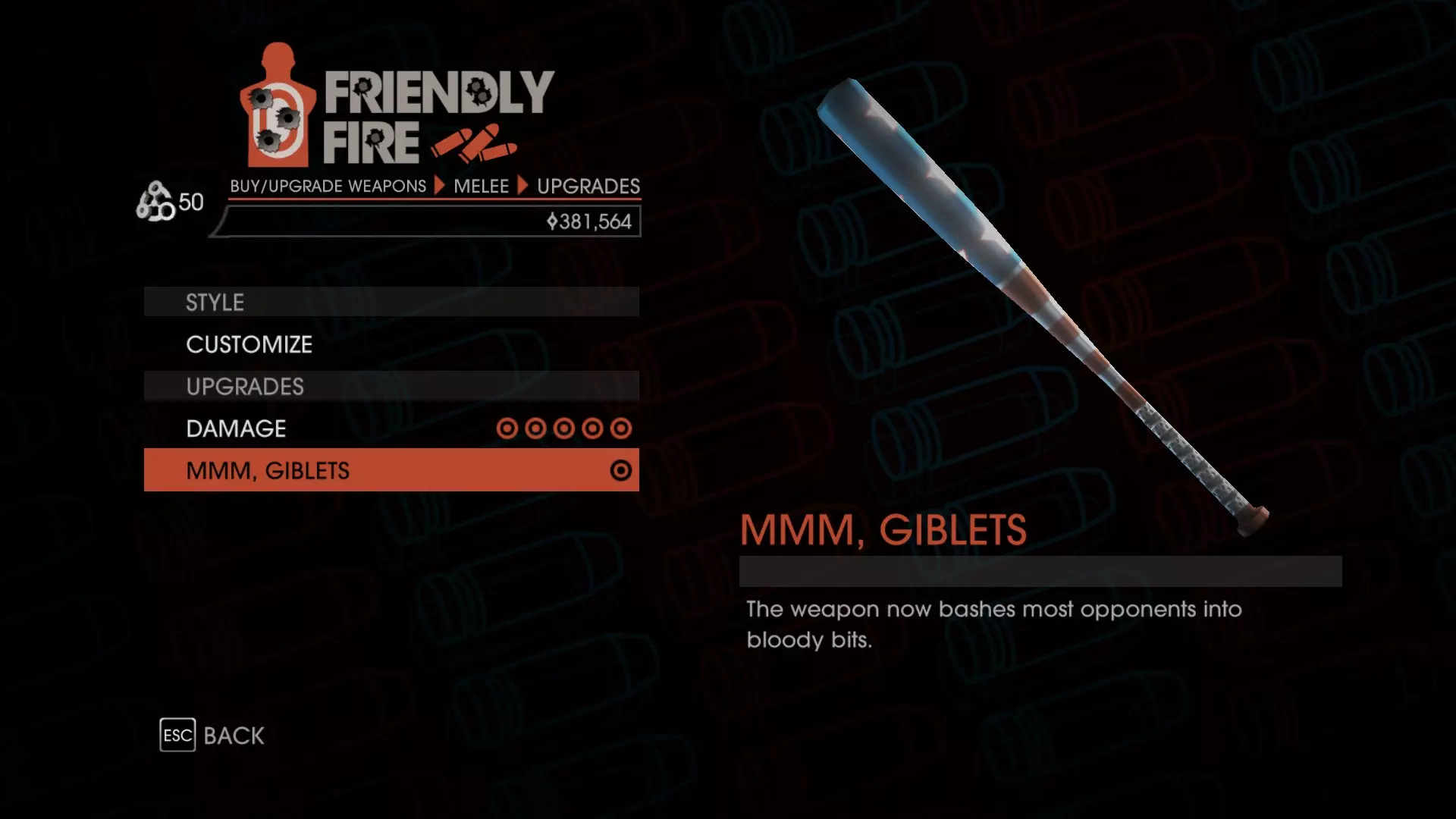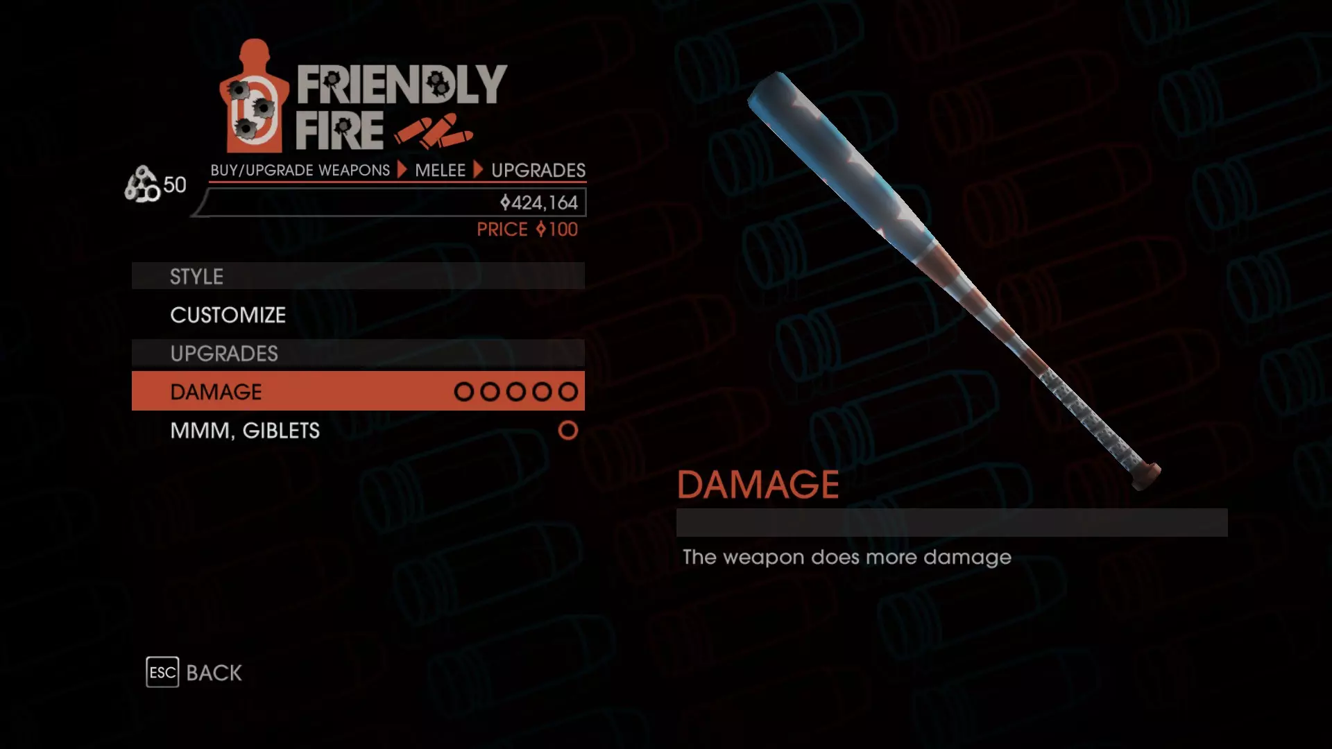 前往最近的【友好火力】商店,将棒球棍升级到满级,就能解锁对应成就。把棒球棍升到满级需要花费42600。