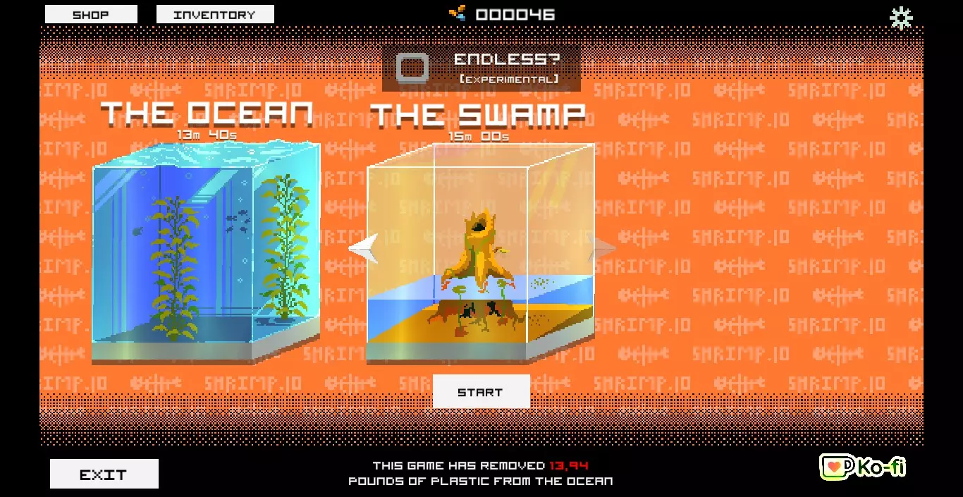这款游戏概念简单但实际极具挑战性,本指南将分享一些游玩此类肉鸽游戏时能学到的知识。 玩法 玩法非常简单,你可以使用键盘上的WASD键,或者通过点击并拖动鼠标来操作。 作为一名玩了不少时间的玩家,我通常建议使用鼠标,但最终还是取决于个人偏好,无论选择哪种方式,多加练习都会让操作变得更轻松。 当你移动时,你的小虾会用触须拍打头部前方的区域,这会对任何正对你这只小甲壳动物的敌人造成伤害。地图 截至撰写本文时,游戏内容仍较为基础,因此玩家仅有两张地图可供选择,分别是海洋和沼泽。 这些地图仅在视觉风格上有所不同,游戏玩法方面完全一致。变化的只有背景和敌人种类,但据我观察,这两个区域本质上是相同的。我能发现的唯一区别是海洋地图中生长着海带,若不留意,可能会略微遮挡视线。