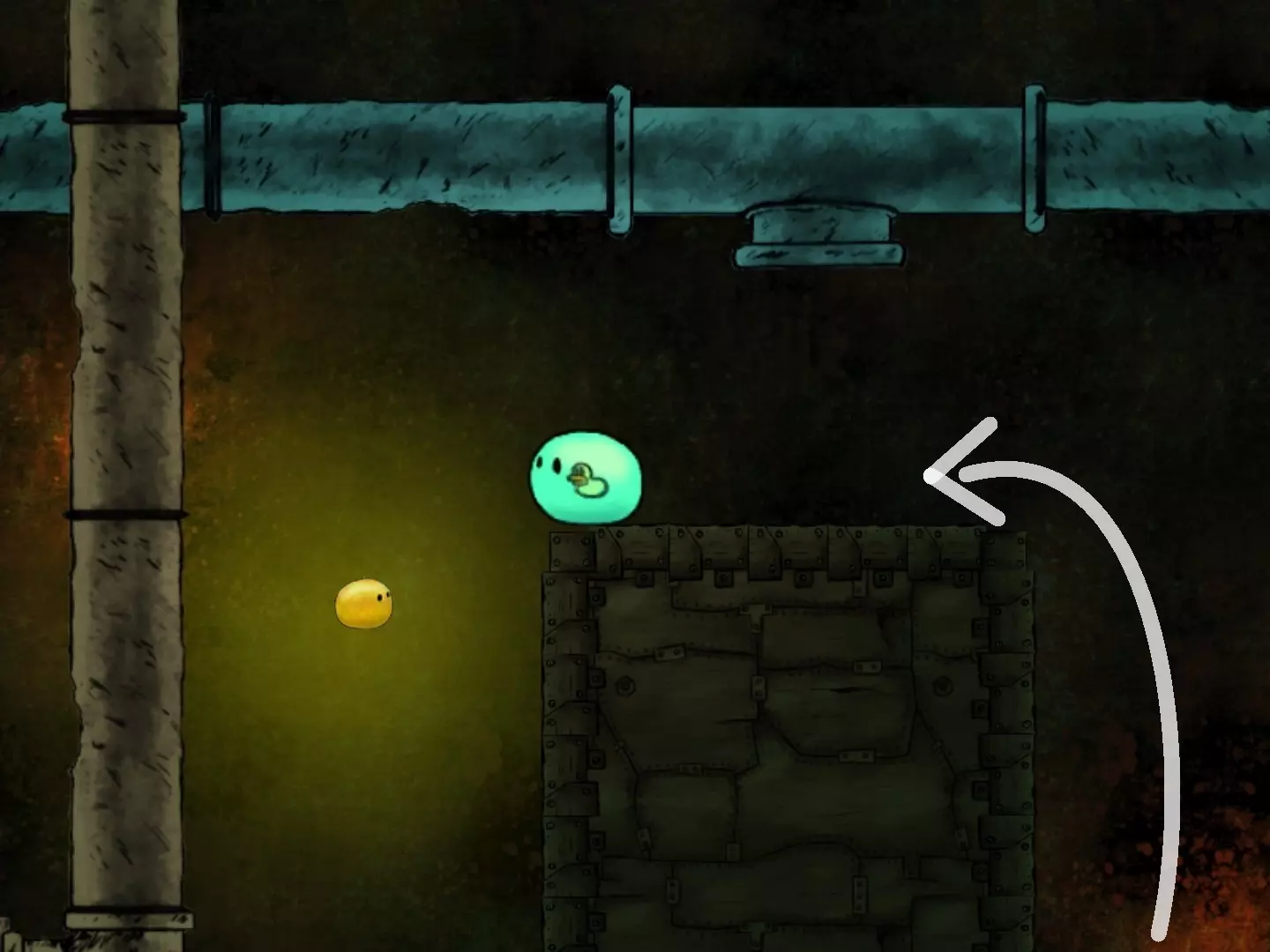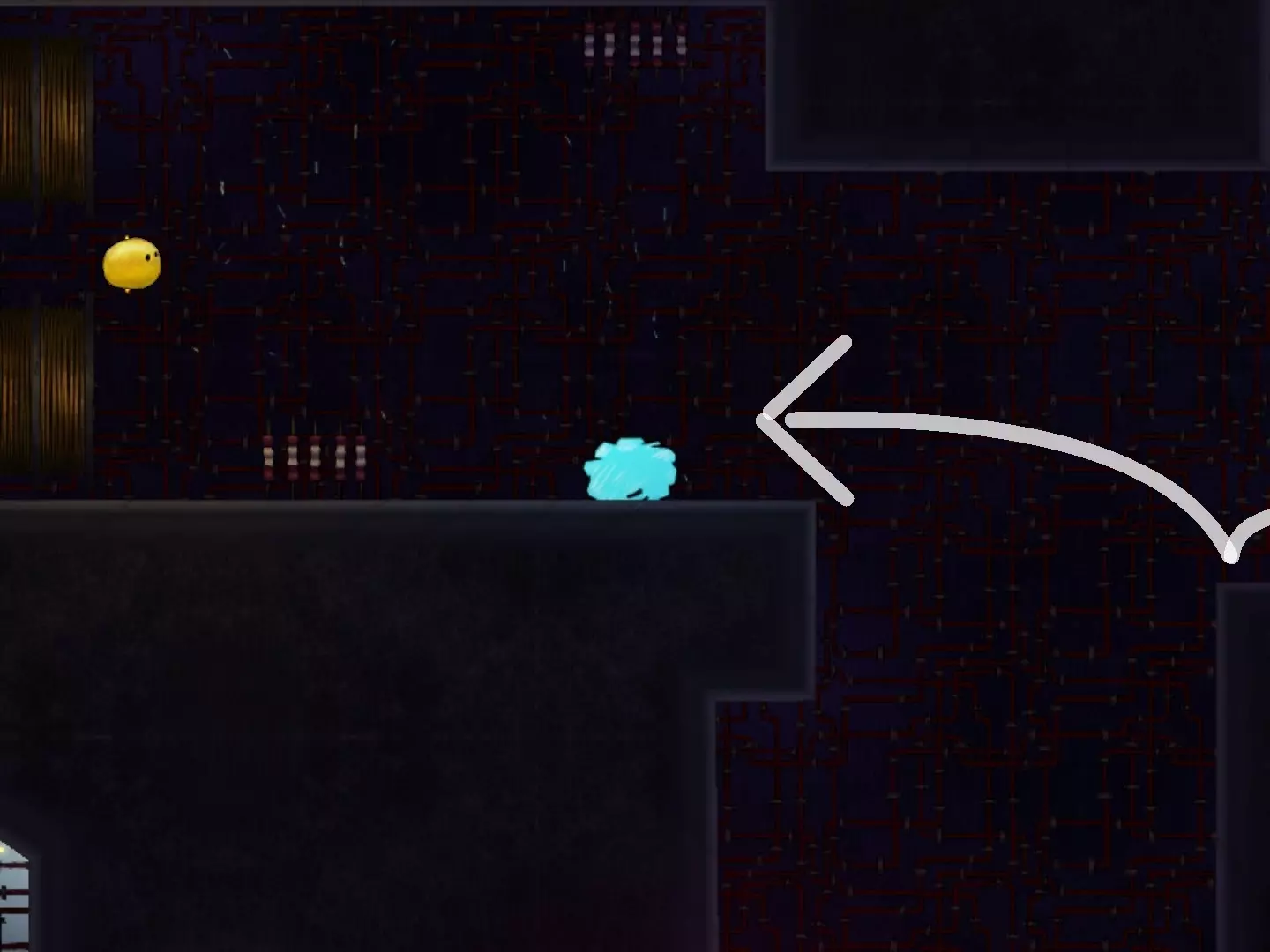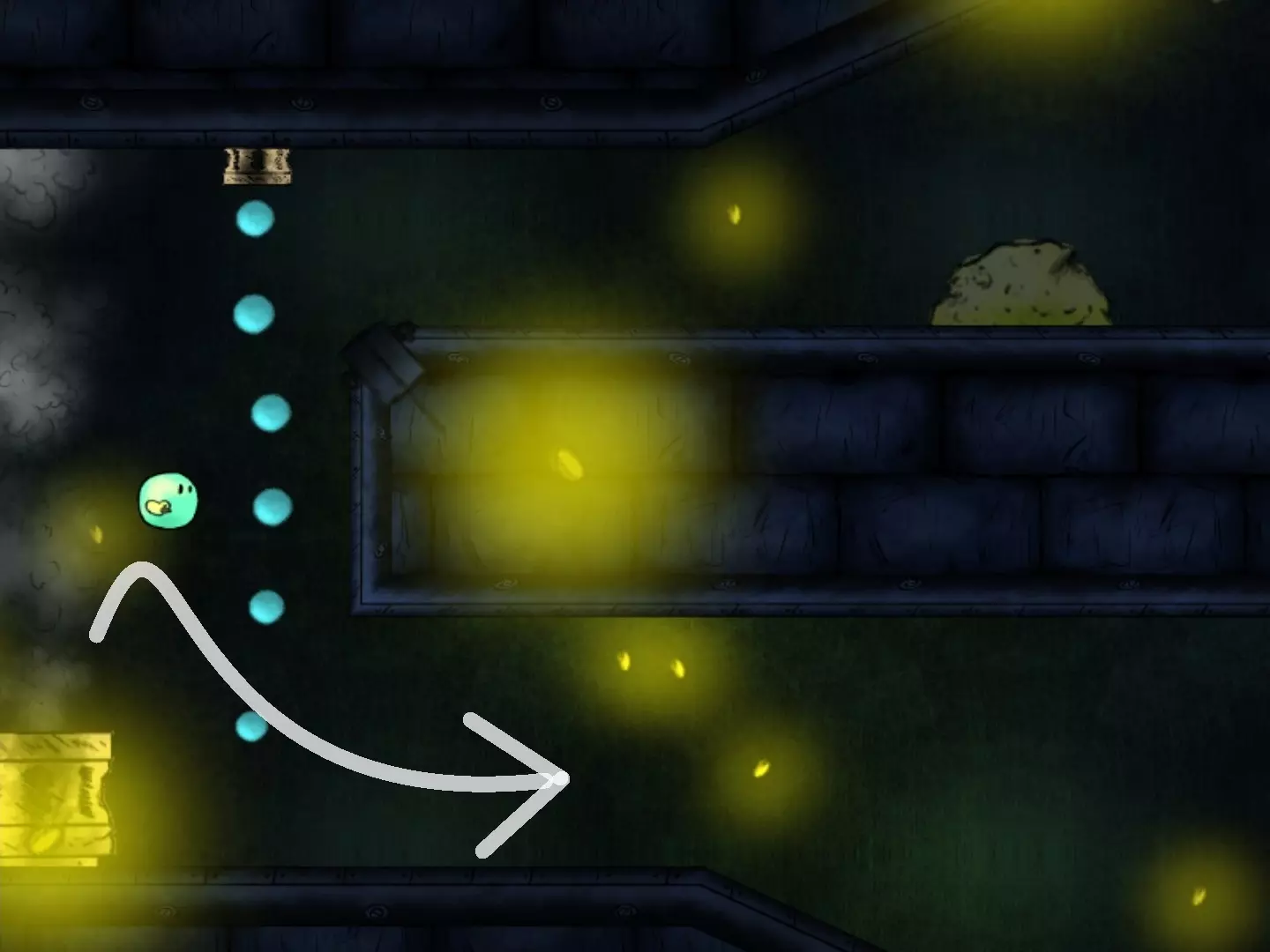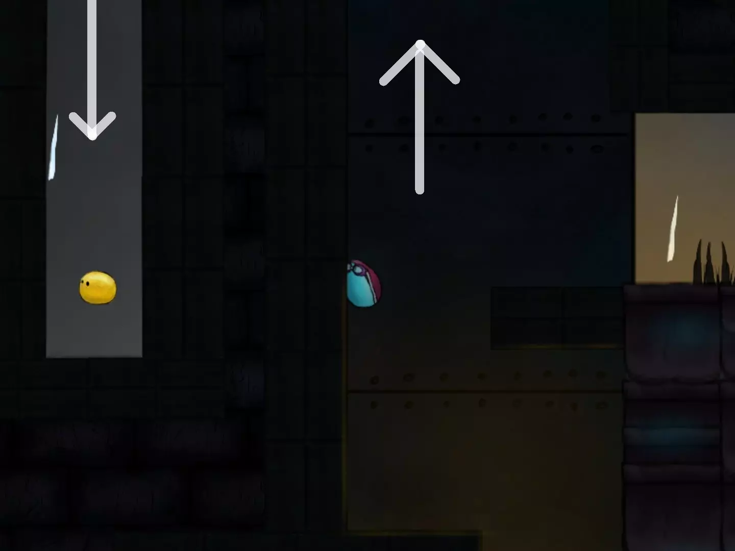 穿越缺口获取第二个代币时,要小心那个黄色液体状的东西。