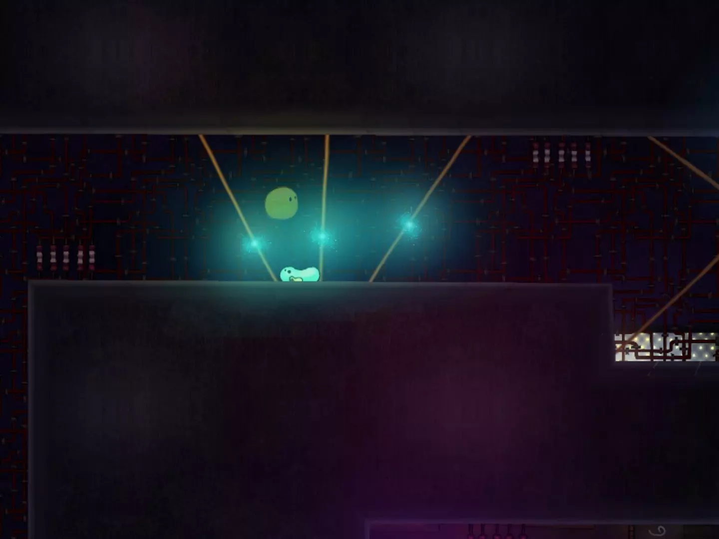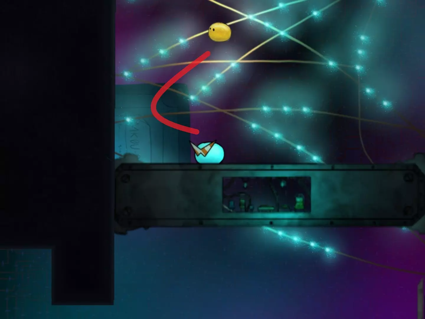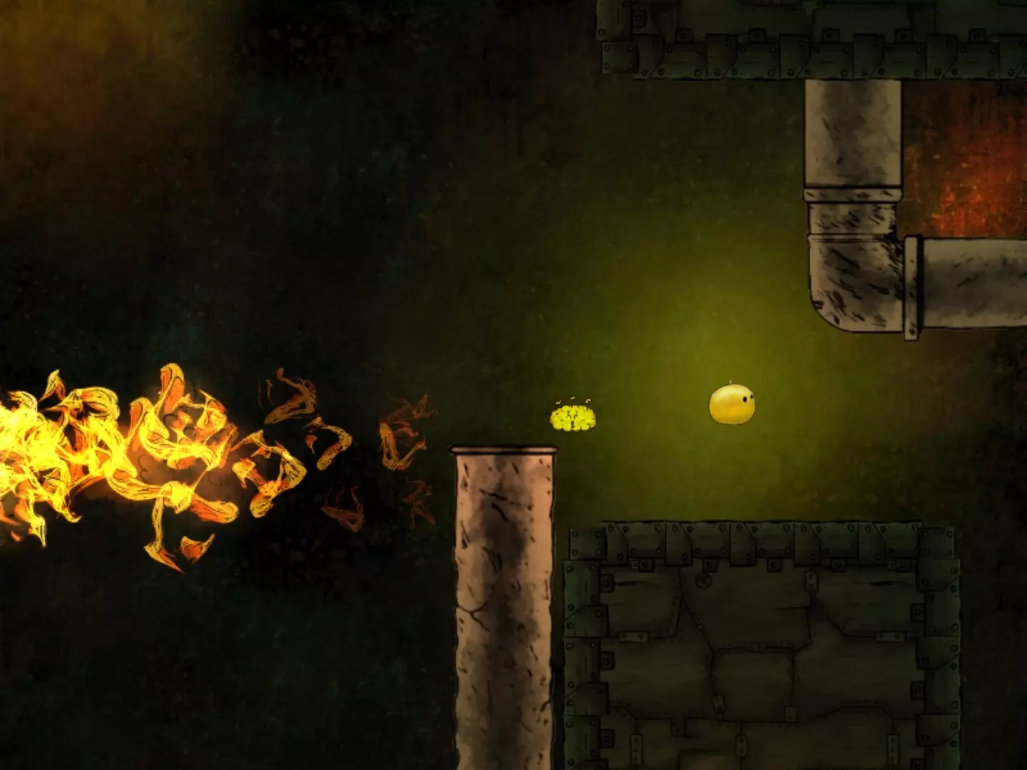 穿越缺口获取第二个代币时,要小心那个黄色液体状的东西。