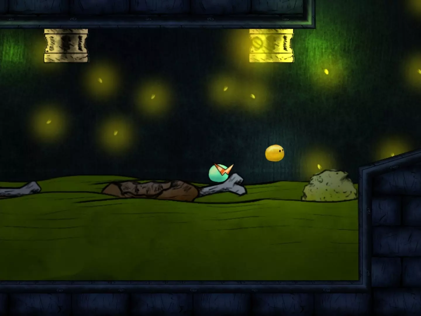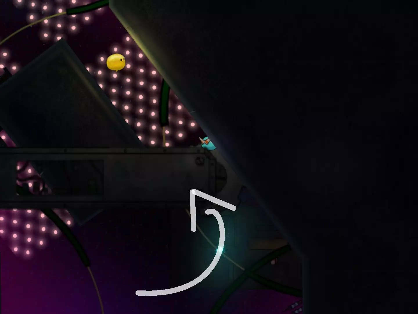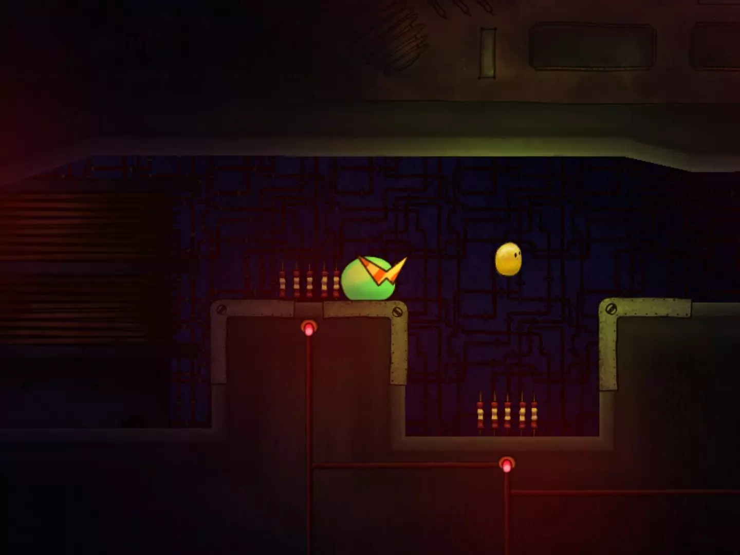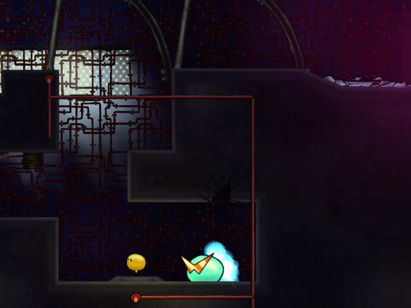 穿越缺口获取第二个代币时,要小心那个黄色液体状的东西。
