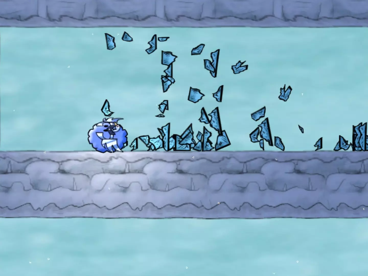 07 ~ 破冰 显然冰块对冲击伤害免疫。哈。 首个标记 本关卡唯一的麻烦制造者。在首次下落时,先跳过缺口再继续前进。