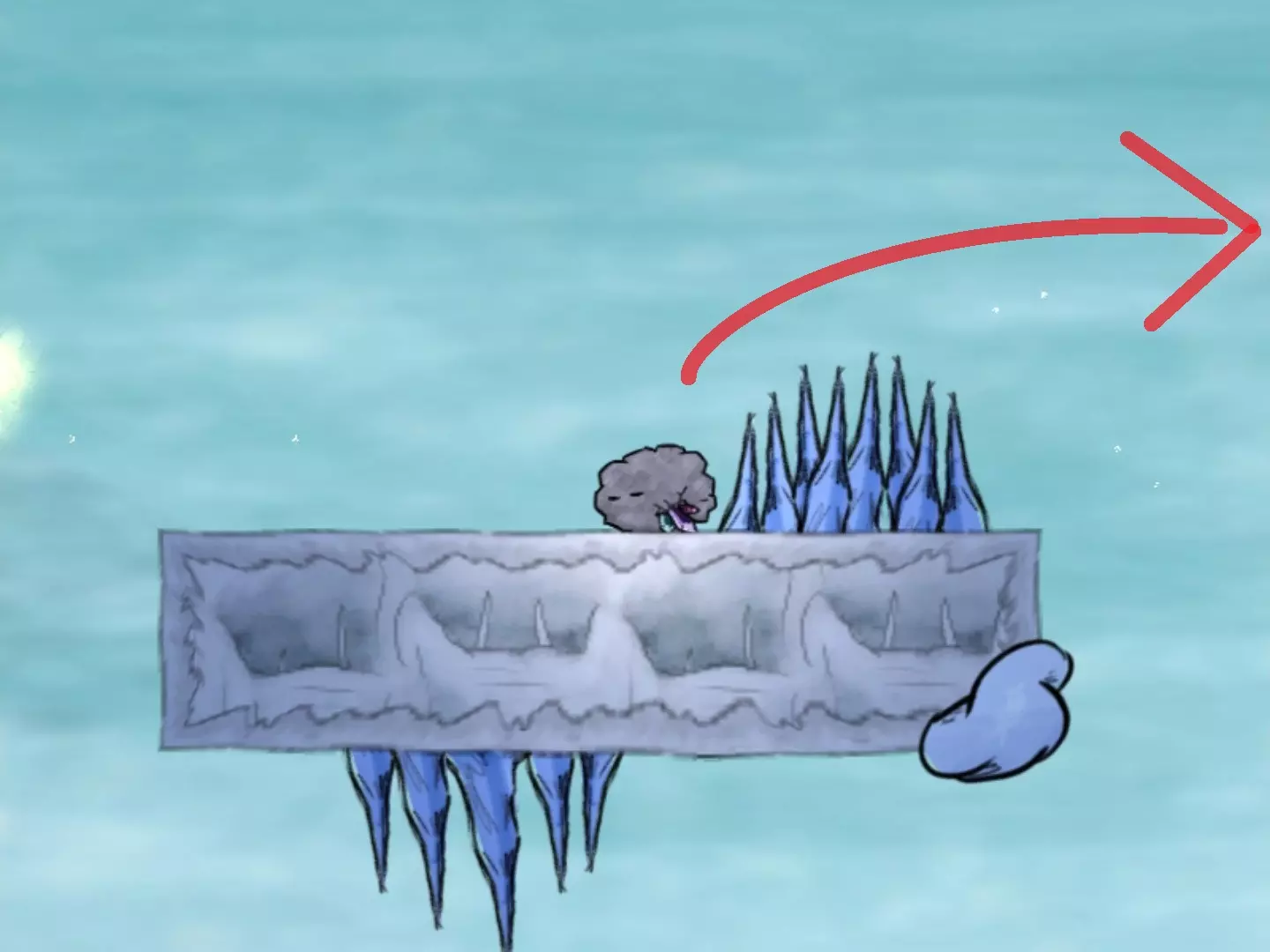 在冰刺的密集爆发之后,当你遇到一条冻鱼时,准备跳过间隙去获取最后一个代币。
