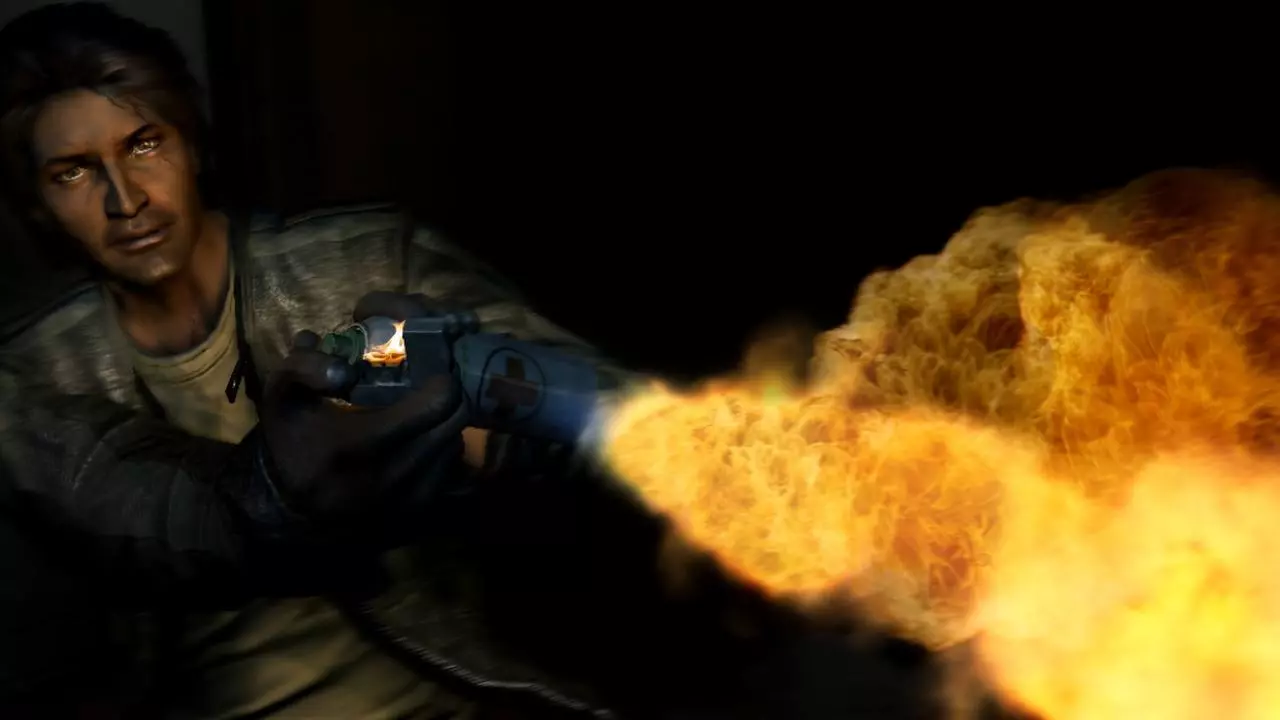 游戏的独特之处还体现在对火焰的运用上:我们可以点燃木板、怪物和车辆。有时需要先找到椅子,以便将火种引到目标物体上;有时则得用手边的材料自制小型火焰喷射器;还有些时候需要砸开油箱或泼洒出一条汽油路径。在这一切中,物品组合系统扮演着特殊角色——Eden Games无疑为所有恐怖冒险游戏的传统玩法元素注入了新的活力。我们在游戏中的每一步都在将某些东西粘贴和缠绕到其他物体上。此外,还可以在野外制作燃烧弹。 总体而言,新的互动水平带来了任务完成方式的多样性。如果紧闭的门无法通过撞击打开,可以尝试将其炸开。如果门上有密码锁,则有两种方法:一是射击控制面板并切断线路,二是接通电源后尝试自行破解密码。在某些情况下还会有其他操作方式,例如让怪物把火焰带入自己的巢穴。