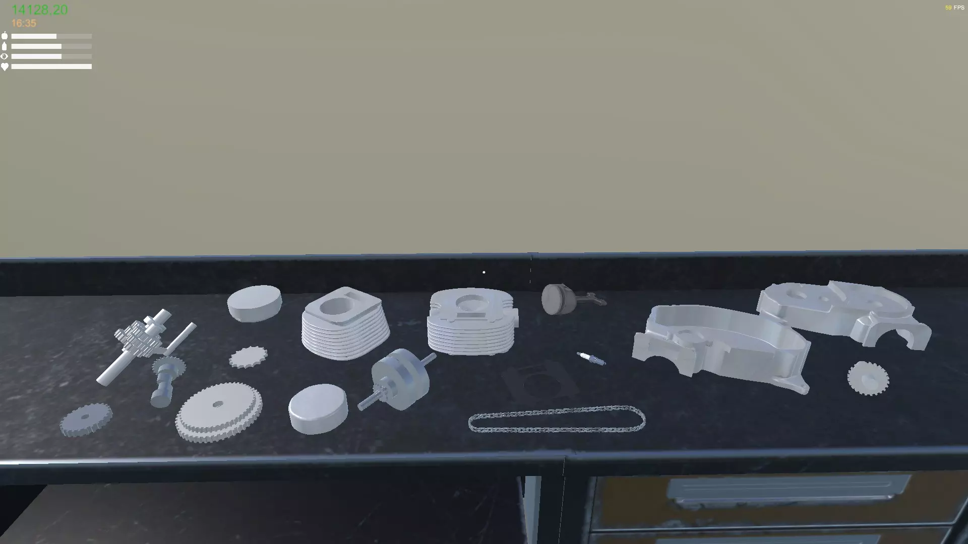 表格的顺序也是发动机的组装顺序。 首先,我们将变速箱5(GearBox5)放入曲轴箱A(CrankCaseA)中。 用2颗螺丝将气缸安装到曲轴上。 用4颗螺丝将曲轴箱B(CrankCaseB)固定在曲轴箱A(CCA)上。 后续组件将安装到上方已装配好的部件上。名称 数量 离合器齿轮 1 链轮 1 曲轴齿轮 1 离合器 6 起动机 0 曲轴箱盖 6 发电机 2 发电机转子 1 气缸 4 气缸盖垫片 0 气缸盖 4 正时链条 0 凸轮轴 4 火花塞 0 机油滤清器 0 滤清器盖 2 气缸盖罩 4 发电机盖 3 化油器 1 空气滤清器 1 燃油管 1 火花塞线 0