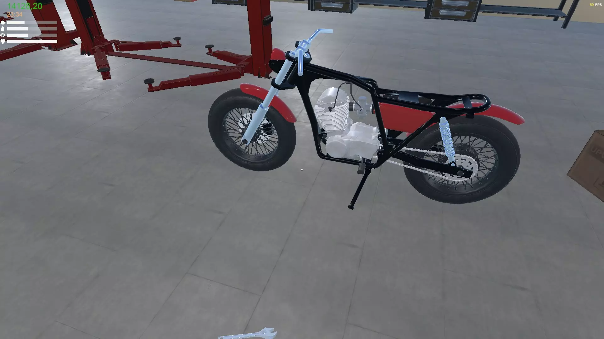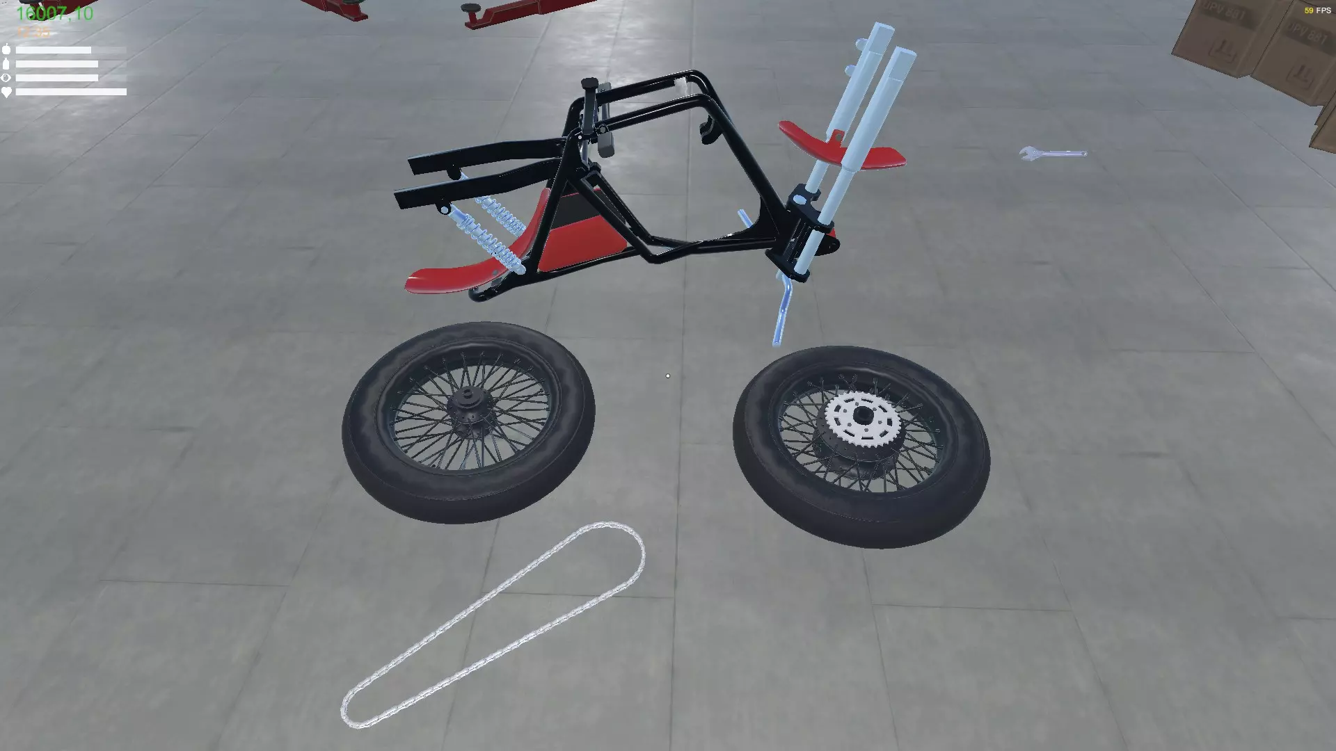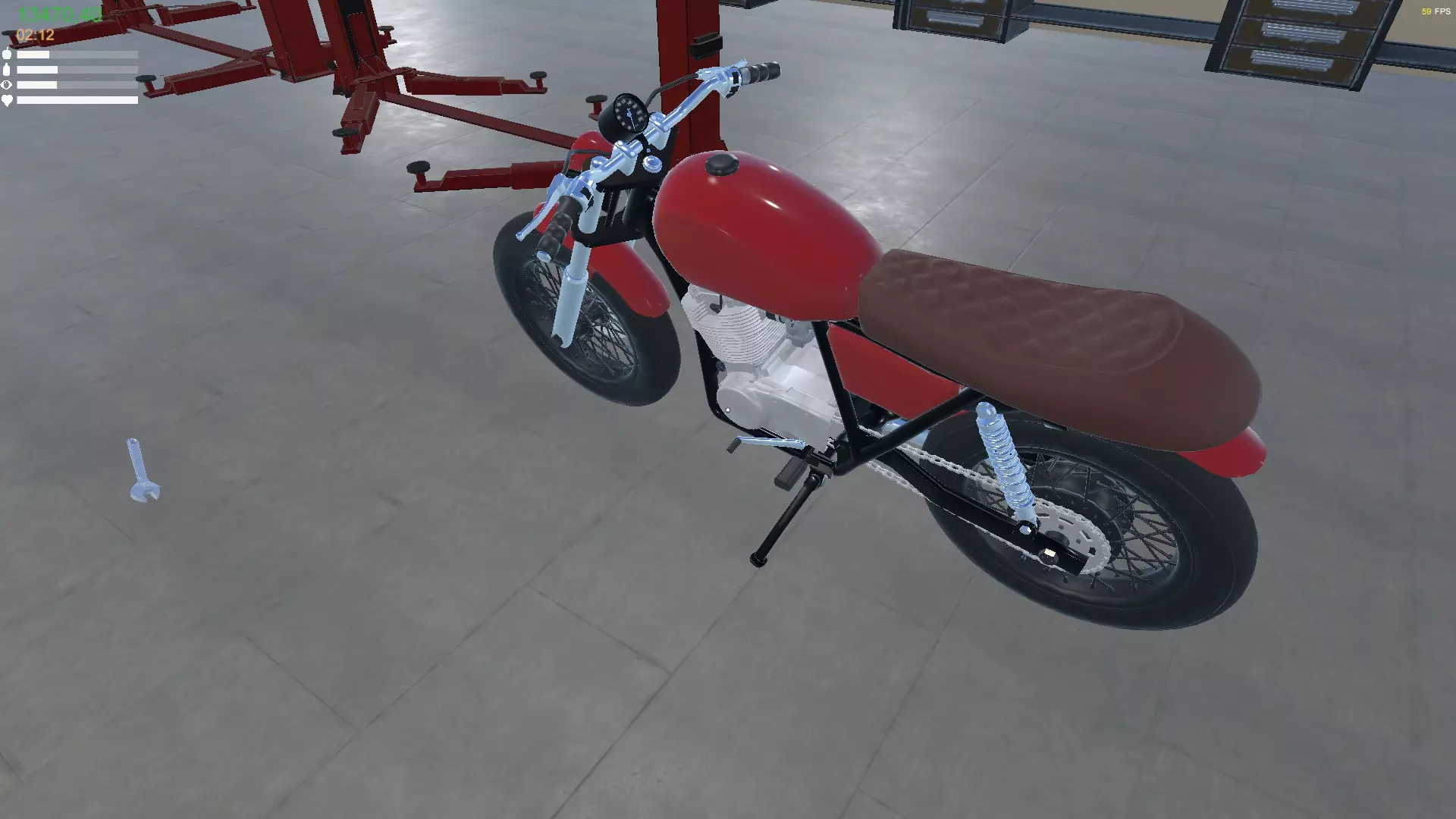 L500组装指南 L500 L500是游戏中的第一辆摩托车。 它可以在汽车经销商或废品场找到。不过,这对于组装L500来说并非必需。与汽车不同,我们可以凭空完整打造出L500。 所有所需零件都可以从目录中获得。 组装仅需扳手和火花塞扳手。 车身