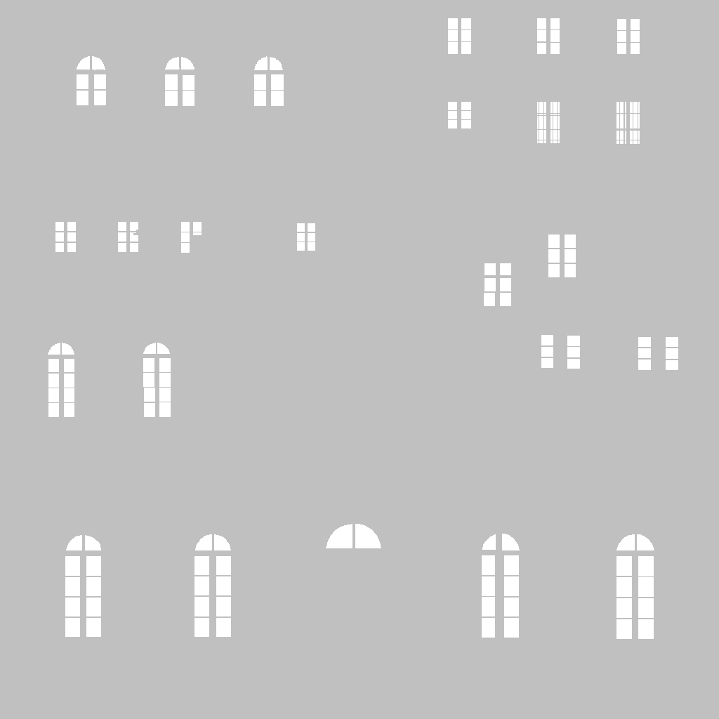 这种光照贴图很容易从高光纹理中导出(你可能需要先创建一个副本)。使用魔棒工具选择背景并将其设置为192,这样在夜间它会保持黑暗。 最后,要么再次选择所有窗户区域并将其设置为120(常亮),要么框选部分窗户并赋予不同数值。在多层办公楼中,你可以决定有些窗户完全不亮,有些经常亮,大多数则较少亮。使用低于192和高于192的数值会创建两组在不同时间亮起的窗户。这比建筑物整晚完全亮着(或完全不亮)更具真实感。 参考:城市:天际线 模组制作 - 建筑资产创建【重要提示】(强烈建议阅读) 《城市:天际线》自定义资产创建新手指南 自定义建筑 7 - 创建资产