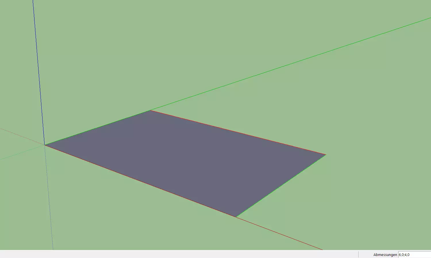 从工具栏和坐标系中心用鼠标绘制一个矩形。绘制完成后,只需输入“6;4”(然后按回车键)作为矩形的尺寸。你的数值将显示在右下角的输入框中,矩形也会相应调整。(如果输入错误,可以重新输入。) 现在或之后,你应该使用【移动】工具将模型移动到网格参考线内的正确位置,或者简单地使其水平居中于原点,除非你希望之后在《城市:天际线》中放置时带有一些偏移。确保移动的是建筑,而不是坐标轴!