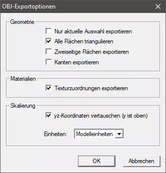 当所有操作完成且你认为模型已准备好在《城市:天际线》中使用时,通过“文件”->“导出”->“3D模型”导出模型。在导出对话框中,选择“.obj”作为文件格式,并检查OBJ导出选项(通过右下角按钮进入)中“导出纹理分配”是否已勾选。另外,建议将模型进行三角化处理,因此除非你需要在Blender中对某些面进行纹理处理,否则也请启用此选项(不确定在《城市:天际线》中不进行三角化是否会有问题)。其他所有选项保持默认即可(截图来自SketchUp 8,新版本可能有所不同)。关闭选项并导出文件。
