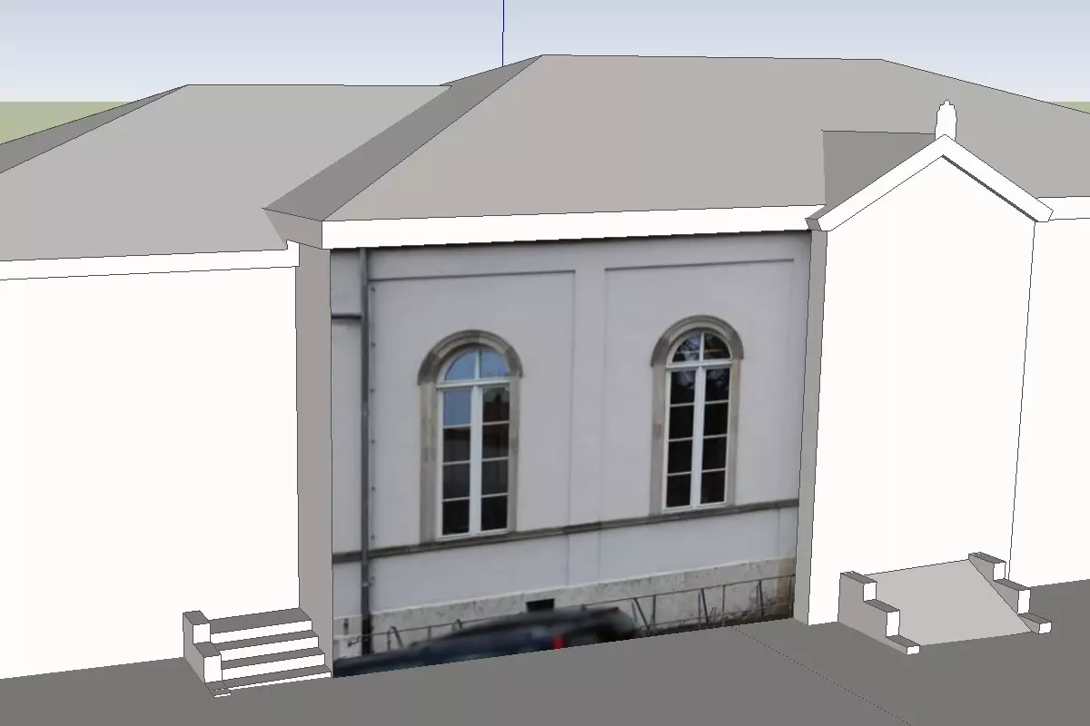 我们就先介绍到这里,但请记住,SketchUp还有许多实用工具。你可以移动、缩放和旋转选定对象,测量距离,还可以使用【圆形】和【跟随路径】工具创建(伪)球体和圆锥体,并且可以将选定的面和边进行成组,以便轻松复制粘贴到其他位置。 再次强调,确保你的建筑相对于原点中心位置正确——这个点稍后将成为你所选x×y网格的中心。除非是在倾斜地形上,否则任何位于红绿平面下方的部分稍后都会处于地下。 【城市:天际线】专用注意事项 在建模真实建筑时,最好有建筑的平面图或至少大致的占地面积,以便获取尺寸数据。你可以从地籍办公室获取详细的建筑地图,也可以查看谷歌地图,那里能看到建筑物的轮廓。你可以选择尽可能精确地创建建筑,也可以略微简化,使其更适合游戏及其8x8米的网格。(矩形建筑比形状不规则的建筑更容易成排放置,但如果你打算使用【Place it!】模组手动放置,网格可能对你来说并不重要。不妨试试看。 注意:为谷歌地球建模建筑时,建议将建筑的重复部分创建为组和可重复使用的组件,以保持模型简洁。在为《城市:天际线》创建建筑时,你仍可暂时使用群组和组件,但在导出建筑以在Blender中进行转换前,必须将它们全部“分解”。然后确保所有部件通过面相互连接(形成一个“网格”),否则这些部件在资产编辑器中会丢失。 我尚未测试在不同图层上操作的情况,但除非你确定可行,否则建议仅使用默认图层。 自定义建筑3 - 纹理处理与导出 到目前为止,你只有一个白色、无纹理的建筑。如果你愿意,可以在此阶段将建筑导出为。obj,将其导入Blender并按照Zordorks的《新手资产创建指南》中的描述进行纹理处理。但如果你同意作者和我个人的观点,即Blender在左右鼠标按钮的使用方面有些不便,那么你可以尝试在SketchUp中为模型添加纹理——那里的操作相当简单直观……或者说,如果不是因为《城市:天际线》的话本该如此。 始终记住,对于《城市:天际线》,你必须只使用一张纹理图像,不能使用多张。 编辑:在某个论坛中, modder Elektrix描述了一种使用自行编写的Blender扩展程序的替代工作流程。它绕过了“单一纹理图像”的限制,通过在Blender中“烘焙”单一纹理来实现。