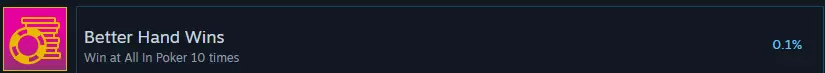 赢得10次全押扑克游戏 你必须一直玩直到赢下全部10场游戏。 (我甚至没搞懂怎么玩扑克就完成了这个成就。)