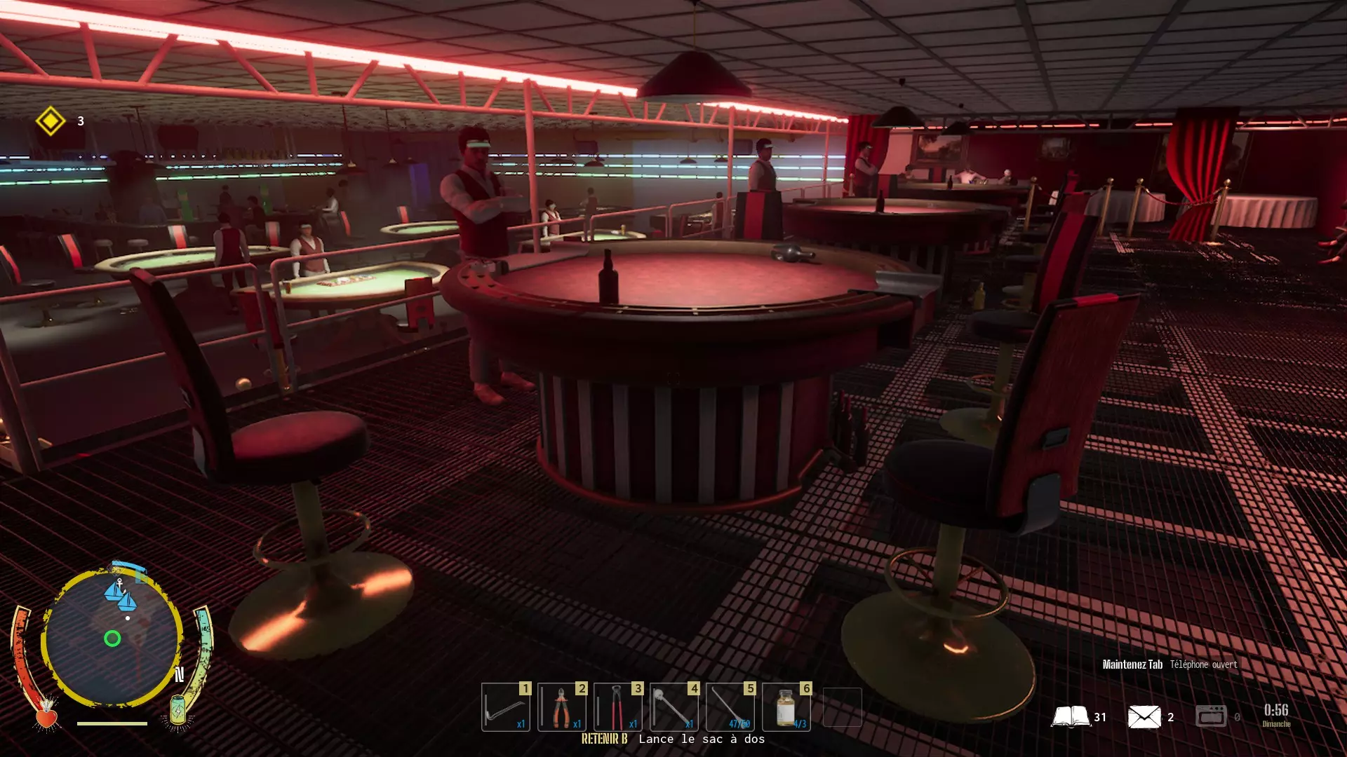 翻新赌场 你需要推进任务进度。 你需要继续赌场任务。 和鲍伯交谈,他会让你去找工人。你需要找到3名工人,每名工人都会提出一些要求。 1. 第一名工人:打败一些匪徒 2. 第二名工人:需要5个大麻烟卷/ blunt 3. 第三名工人:藏在服装店后面的工具箱 营销天才