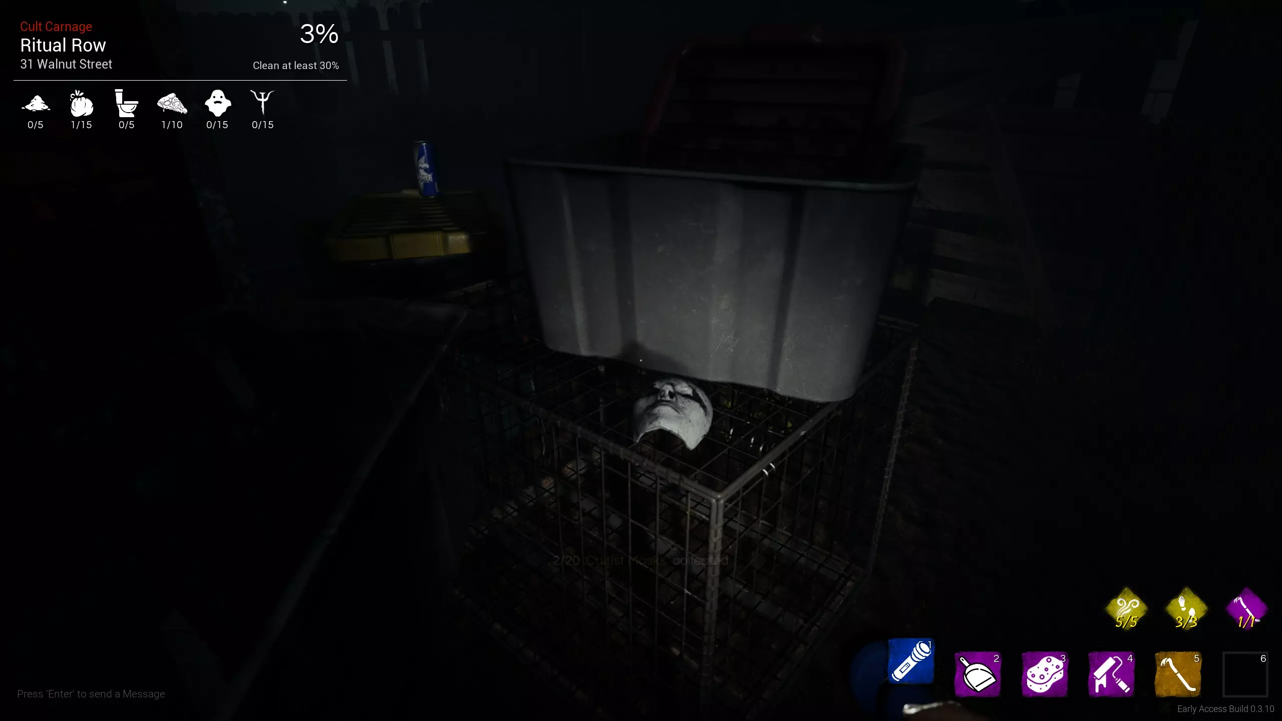 我终于在仪式街找到了全部20个邪教面具,想着可能有人也在为此发愁,所以决定分享一下! 房子(5个面具) 房子位于街道尽头靠近卡车的位置。它一开始就是解锁状态,但要打开二楼最后一扇门需要主卧室钥匙。 厨房