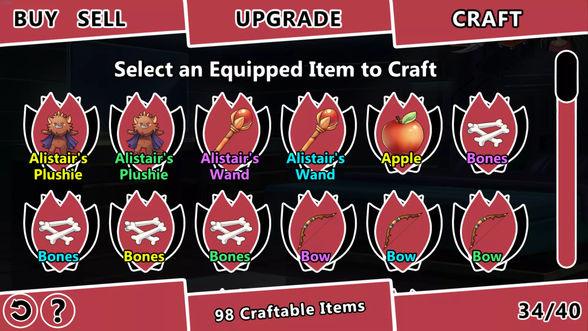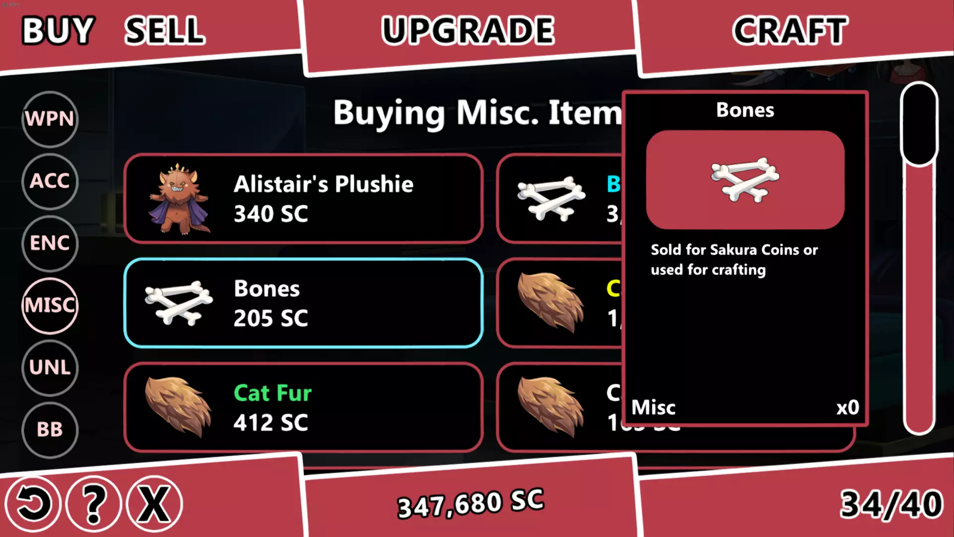 游玩【疯狂】难度模式会好得多,因为对于大多数杂物类物品,你可以通过游玩故事模式获得C级和B级的配方以及制作配方。此外,你至少应该拥有32个背包格子,以减少在标签页之间切换的时间。 总结一下 既然你已经了解了机制和要求,你应该知道该怎么做了。 1. 获取一个从B级到SS级的【杂物】类物品的制作配方。(武器和饰品需要复杂的物品组合才能升级,而【杂物】类物品则简单得多) 2. 关闭所有制作、出售和购买的确认提示。(这很重要,启用确认提示会让你浪费双倍的时间) 3. 购买更多背包并出售 inventory 中的物品来腾出空间,尽可能多地腾出空间。只要你不退出,之后可以以相同价格回购已售出的物品。 4. 从商店购买16的倍数个物品。从下图可以看出,C级骨头每个售价205 SC,因此16个的总价为3280 SC。