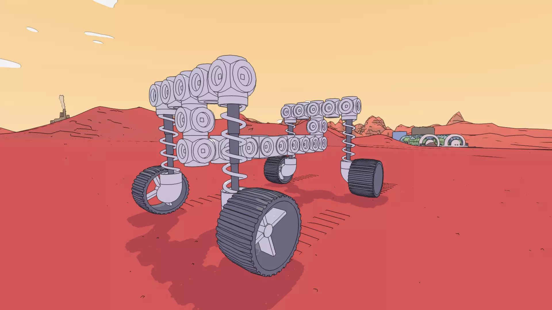 其他可建造物 要解锁其他可建造物品,只需继续完成主线任务即可。所有建造物品有一个有趣的特点:如果需要,你可以通过抓钩从它们上面荡过去。此外,如果你解锁了磁性轮,就可以沿着管道行驶。和单轨铁路一样,为了操作更简便,建议从节点延伸建造到你现有的线路上。 以下是解锁其他建造物品的大致阶段: 水管:生态圈主线任务链 燃料管:火箭主线任务链 电力线:集市(龙卷风)主线任务链 道路:主线任务的最后阶段——太空电梯