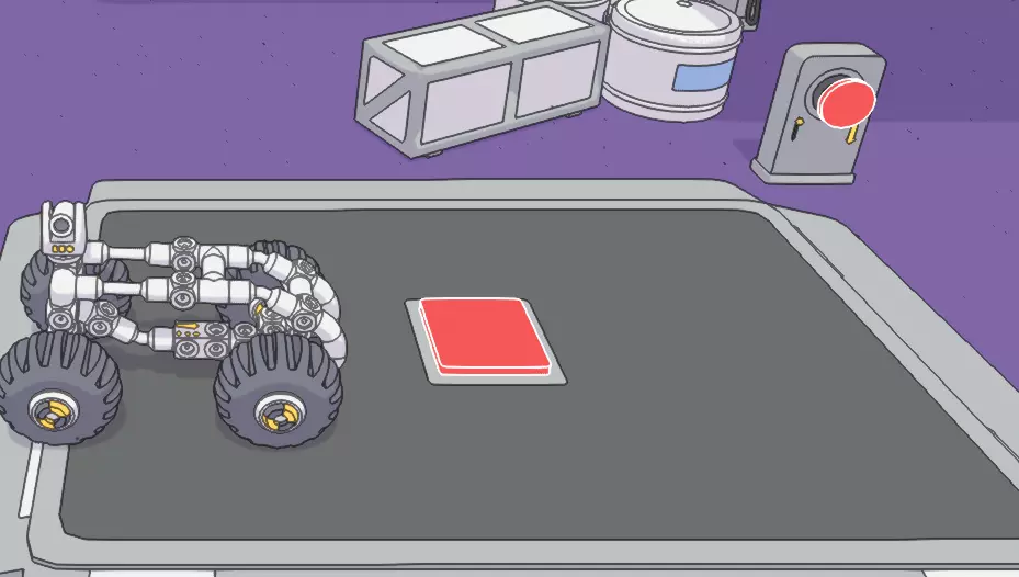 单轨列车基础操作 连接好两个车站后,你就可以乘坐列车在车站之间往返了。要登上列车,你需要站在站台上,按下其中一个红色按钮,乘坐电梯到达站台顶部。如果站台已经升起,你则需要按下剩余的那个按钮将其降下。