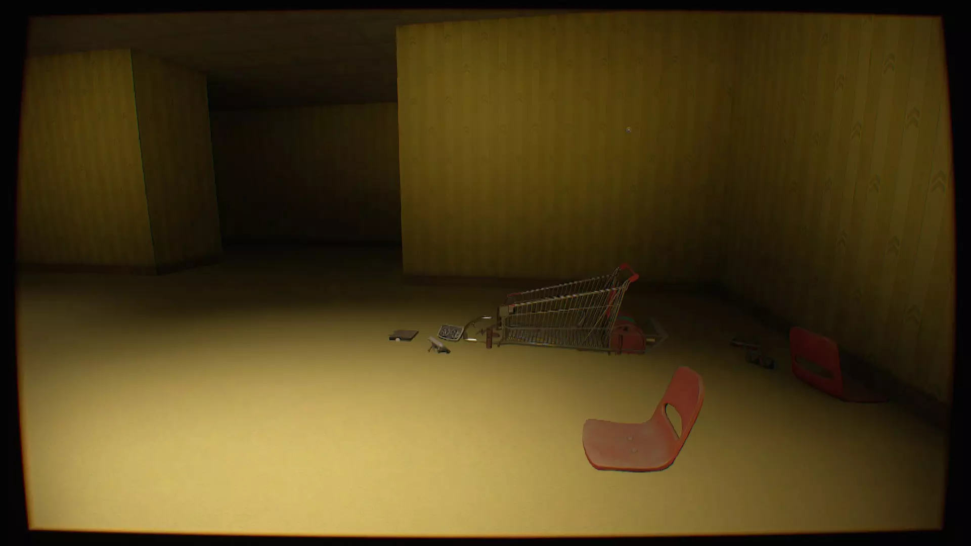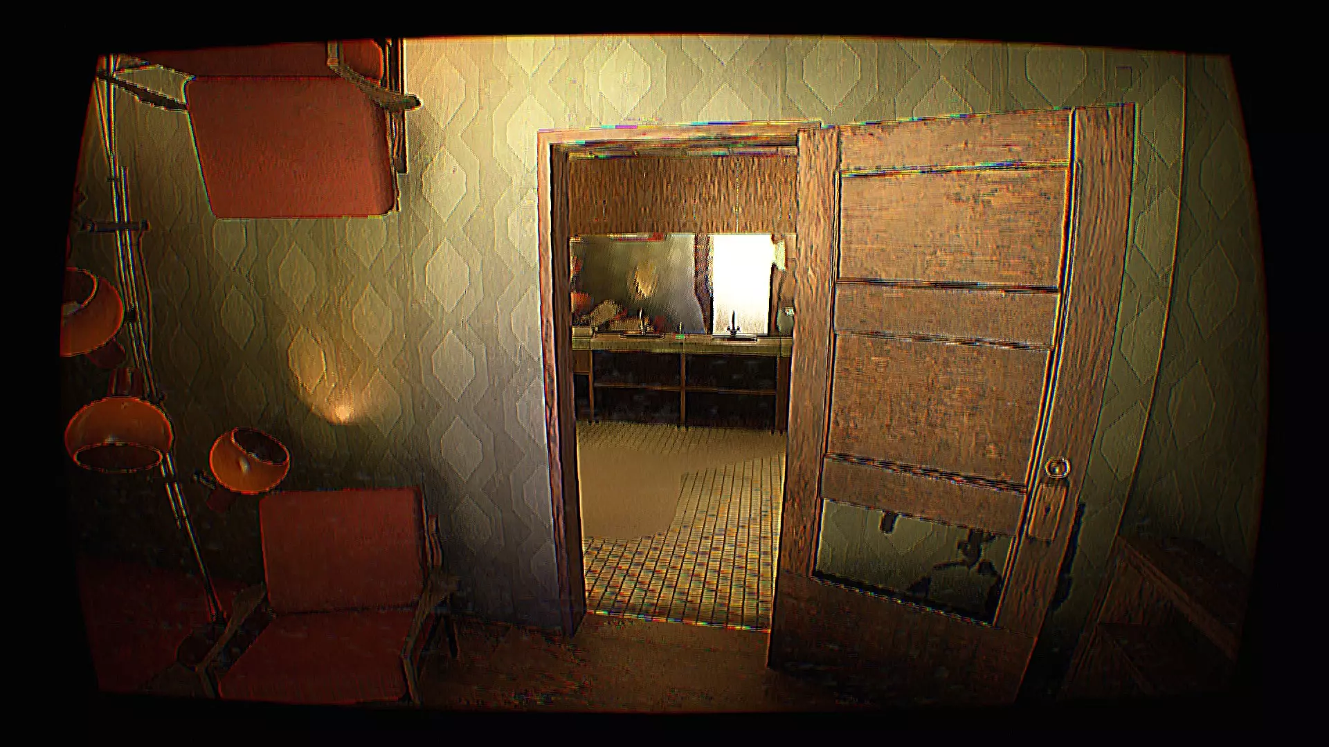 接下来需要走到左边的第二扇门。在进入之前,你可以拿起放在门前的金属探测器。金属探测器将帮助你更快地在【后室】中找到怪物。