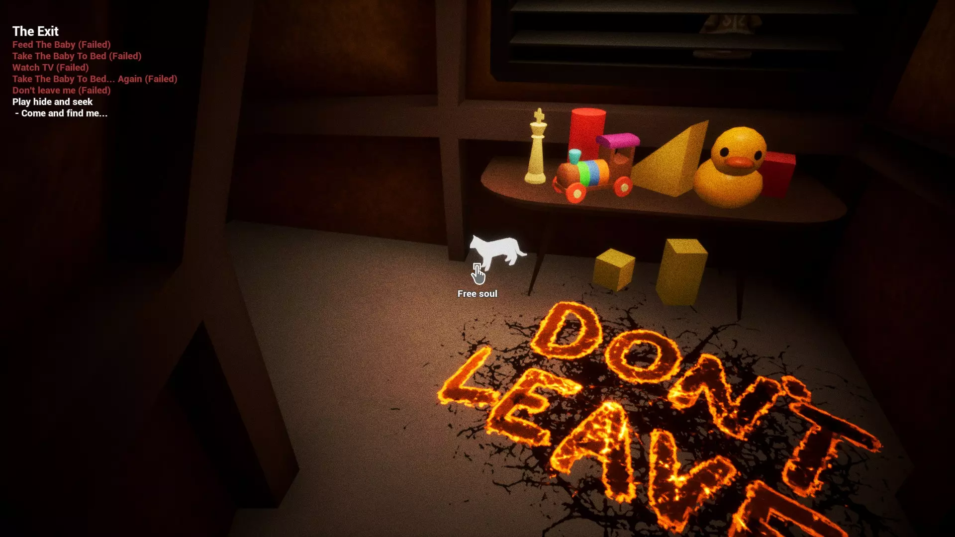 灵魂12 在一段紧张的追逐场景后,你将进入一个有摆满玩具的桌子的爬行空间,灵魂就在那张摆满玩具的桌子下面。
