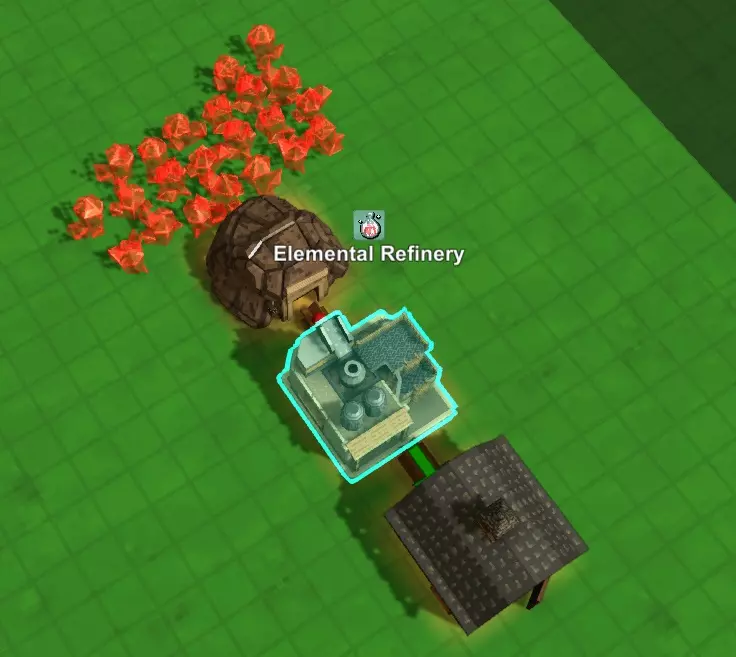 当你用魔力管道创建出一个回路后,它们会开始发光并产生动画效果,这样你一眼就能明显看出自己用它们创建了一个回路。我投入这个独立回路的少量魔力水晶,现在会永远循环运转,为建筑供能,变黑,充能,变白,然后重新开始循环。周而复始。你的元素精炼厂现在已永久获得充足能量,你再也不用担心它的能源问题了。