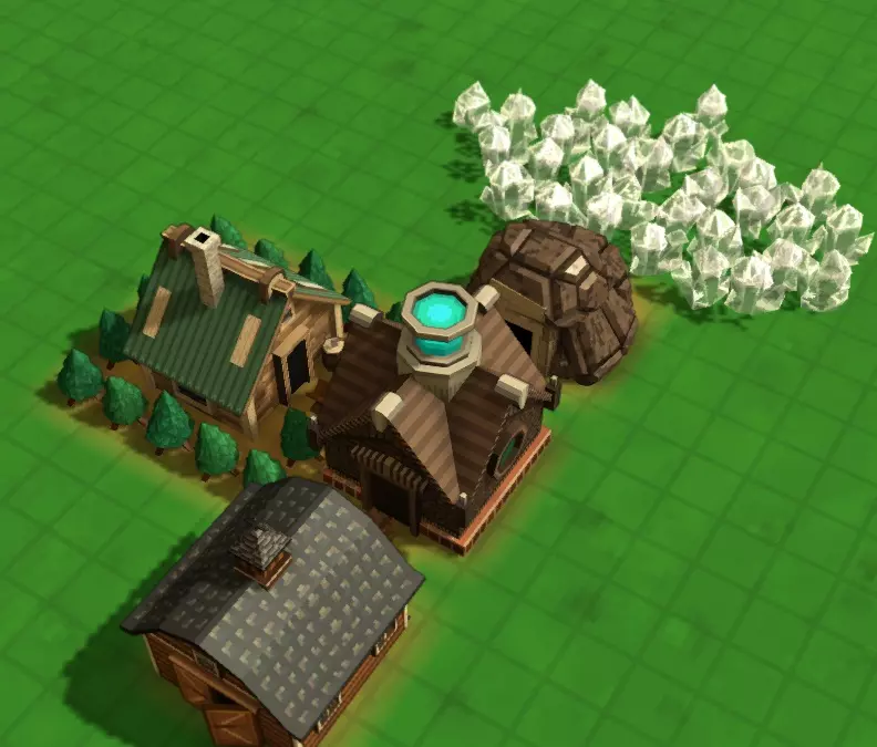 一旦完成,它将解锁【魔法熔炉】建筑,你会经常使用该建筑来生产所有与魔力相关的所需物品。 现在你已拥有开始旅程所需的全部工具,接下来需要从采集【魔力碎片】开始。 【魔力碎片】无法由你的镇民采集,必须通过【矿场】建筑或【采集钻头】进行采集。我通常不会费心使用【采集钻头】,而是直接建造【矿场】。采集到【魔力碎片】后,将其送往【魔法熔炉】,为熔炉提供燃料(如图中我用【护林人】提供燃料),然后让熔炉开始生产【魔力水晶】。