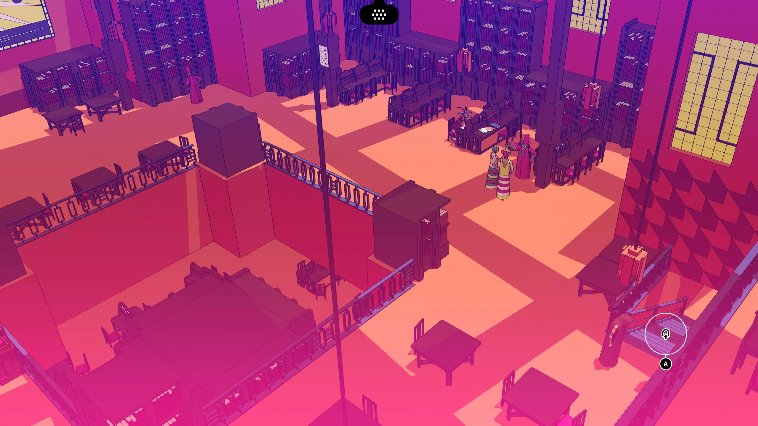好的,你已经到达下一个紫色大门了!开门密码:“theatre bard plural go”。 这次,这里有两个而不是一个活跃的电击怪。对付这个,只需在安全的时候从一端冲刺到另一端,不需要什么花哨的操作。 【第四关:实验室】 前往第九个大门,从顶部数第二个。向上走进入图书馆,然后四处跑动直到找到出口。开个玩笑啦,毕竟我是你可爱的方向向导。 向左走,然后从右下角下楼梯。接着向上走,从左边的门进去。现在你已经到达图书馆前方,从左侧下楼梯就能找到你的最终大门。