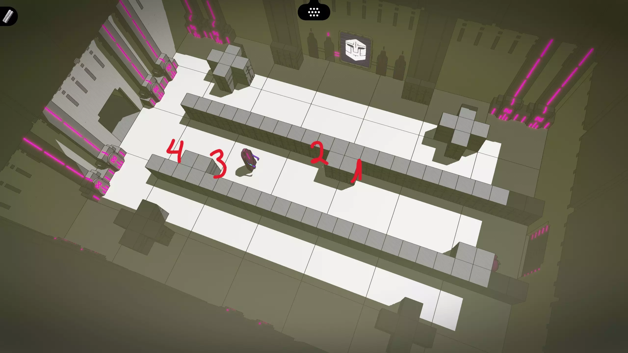你来到了最终大门!这一画面可以描述为:“六本书”。 更多依靠电池供电的伙伴们来到这里,要用他们的闪电生成器对毫无防备的受害者进行测试。这次的情况更棘手一些,你必须更加注意时机。前往中心区域,只有当中间那个家伙经过且看不到你的时候,再移动到墙的远端。然后在安全无虞时,全力冲刺到终点。 传送门对话 我原本没有包含这一部分,但为了内容完整,以下是不同终端处的各类对话。修道院 修道院中仅有一处对话需要翻译,位于第一个传送门处。 句子 信徒 炼金术士 "你帮帮我!" 你帮帮我 你帮帮我 "植物快死了!" 植物植物死 植物复数死亡 "我不希望植物死掉!" 我不想要植物植物死亡 我不想要植物复数死亡 "我会帮你的" 我帮你 我帮你 "我会制作配方" 我做药水 我做配方 要塞 要塞中的两个传送门处均有需要翻译的对话。一直冲刺,一直冲刺…… 最终,你来到一个迷宫。你要走的路线是向上、向右、向上、向左、向上、向右。一直躲避怪物奔跑,直到再次找到你的小伙伴,然后继续躲避怪物奔跑。你会看到一个拉杆,拉动它将怪物从桥上推下去。太棒了! 各位,我的提示就到这里,我不想给你们可爱的玩家剧透结局。第三个传送门: 语句 战士 信徒 【“不洁者不得通过!”】 复数不洁者不得通过 信徒信徒不得通过 【“不洁者不得创作音乐!”】 复数不洁者不得创作音乐 信徒信徒不得创作音乐 【“信徒创作音乐”】 复数不洁者创作音乐 信徒信徒创作音乐 【“战士热爱音乐!”】 复数战士热爱音乐 战士战士热爱音乐 第四个传送门: 语句 炼金术士 战士 【“炼金术士想要帮助怪物”】 炼金术士复数想要帮助怪物 复数科学家想要帮助不洁者 【“炼金术士感到害怕”】 炼金术士复数感到害怕 复数科学家感到害怕 【“炼金术士不想死!”】炼金师们不渴望死亡。科学家们不渴望死亡。 “勇士们不惧怕污秽之物!” 战士们不畏惧怪物。战士们不畏惧污秽之物。 战士们会帮助科学家们。战士复数帮助炼金术士复数 复数战士帮助复数科学家 花园 我们回到一个对话,在传送门6: 句子 吟游诗人 信徒 "我向那人致敬" 男人我问候 我问候男人 "我们不是男人" 不是男人我复数是复数 我我不是男人男人 "我们不自由" 不是自由我复数是复数 我我不自由 "修道院是自由的" 自由修道院是 修道院自由 "来修道院吧" 修道院你们复数去 你们你们修道院去 实验室 实验室有2个对话需要翻译,在第8和第9传送门。第8个传送门: 语句 炼金术士 吟游诗人 【兄弟们,我在寻找】 我寻找兄弟们 兄弟们我寻找 【兄弟们,战士们不是】 战士们不是兄弟们 不是兄弟们战士们不是 【我找到了一本书】 我找到书 书我找到 【我们是兄弟!】 我们兄弟们 兄弟们我们是 【兄弟们,我们是!】 我们兄弟们 兄弟们我们是 第9个传送门: 语句 战士 吟游诗人 【战士们热爱音乐】 战士们热爱音乐 音乐战士们热爱 【天选之人,来堡垒吧!】“被选中者前往要塞 要塞吟游诗人前往 “乐器,吟游诗人拥有” 复数被选中者拥有复数乐器 乐器复数吟游诗人复数拥有 “音乐,吟游诗人热爱演奏” 复数被选中者热爱创作音乐 音乐吟游诗人复数热爱演奏 “吟游诗人将前往要塞” 复数被选中者前往要塞 要塞吟游诗人复数前往 结束……? 好的,这部分的剧透程度更高!如果你只是来这里寻找紫色大门的位置,现在就别看了。 最后警告! 我是认真的! 话不多说,以下是在你翻译每个传送门的对话并处理完所有紫色大门后会发生的事情。 一旦你登上塔顶,我很高兴地通知你,你现在可以重新玩整个游戏了!这次更新增加了一些小故障。开个玩笑啦。我不想在这里剧透太多,但会给大家一些解谜提示。 你会在这里遇到玩捉迷藏的小伙伴,跟着他四处走之后,你会回到堡垒。你想通过的大门是锁着的,终端也有点故障。答案就在壁画室里,所以去那里找出你需要的壁画:最右边那幅。你能看懂大部分内容,但有一个字符是混乱的。不过从图像中很容易猜到。你需要的完整句子是【复数的不纯洁者创作音乐】。 继续跟着你的朋友到花园,然后径直往前走。剧院外面有一个脾气暴躁的吟游诗人。要安抚他们,直接进去就行。你会看到水里有东西在闪闪发光。把它捡起来,然后交给吟游诗人。他们会训斥你,但随后你的朋友会再次出现!为了继续前进,你的伙伴会帮你操作电梯,这样你就能绕过所有阻挡进入剧院的碎石堆了。 当你到达旧传送门时,会发现需要另一个密码。这个密码(大部分)可以在之前房间墙上钉着的剧本里找到。 这次的密码是【brother idiot bard find】。 门为你打开了!但现在你回到了修道院大门外。你需要另一个密码,所以向左走查看壁画。不过……你要找的那幅壁画不见了。下楼梯去寻找壁画的碎片吧。地上有一个大部分损坏的装置,它无法提供读数,但如果你查看炼金术士的文字,能看出那像是代表“复数”的符号。 再往前走一点,你会发现壁画的其余部分,上面只有“制造”这个词。 你需要弄清楚壁画最初写了什么,但从图像中猜测相当简单,尤其是你已经知道中间两个词是“复数 制造”。 完整的信息是:“炼金术士 复数 制造 配方”。 现在,你可以穿过修道院大门了。不过,我们在实验室遇到的那位怕阳光的老朋友过来“拥抱”我们了。而且这次它不那么怕阳光了。尽快 sprint 逃离