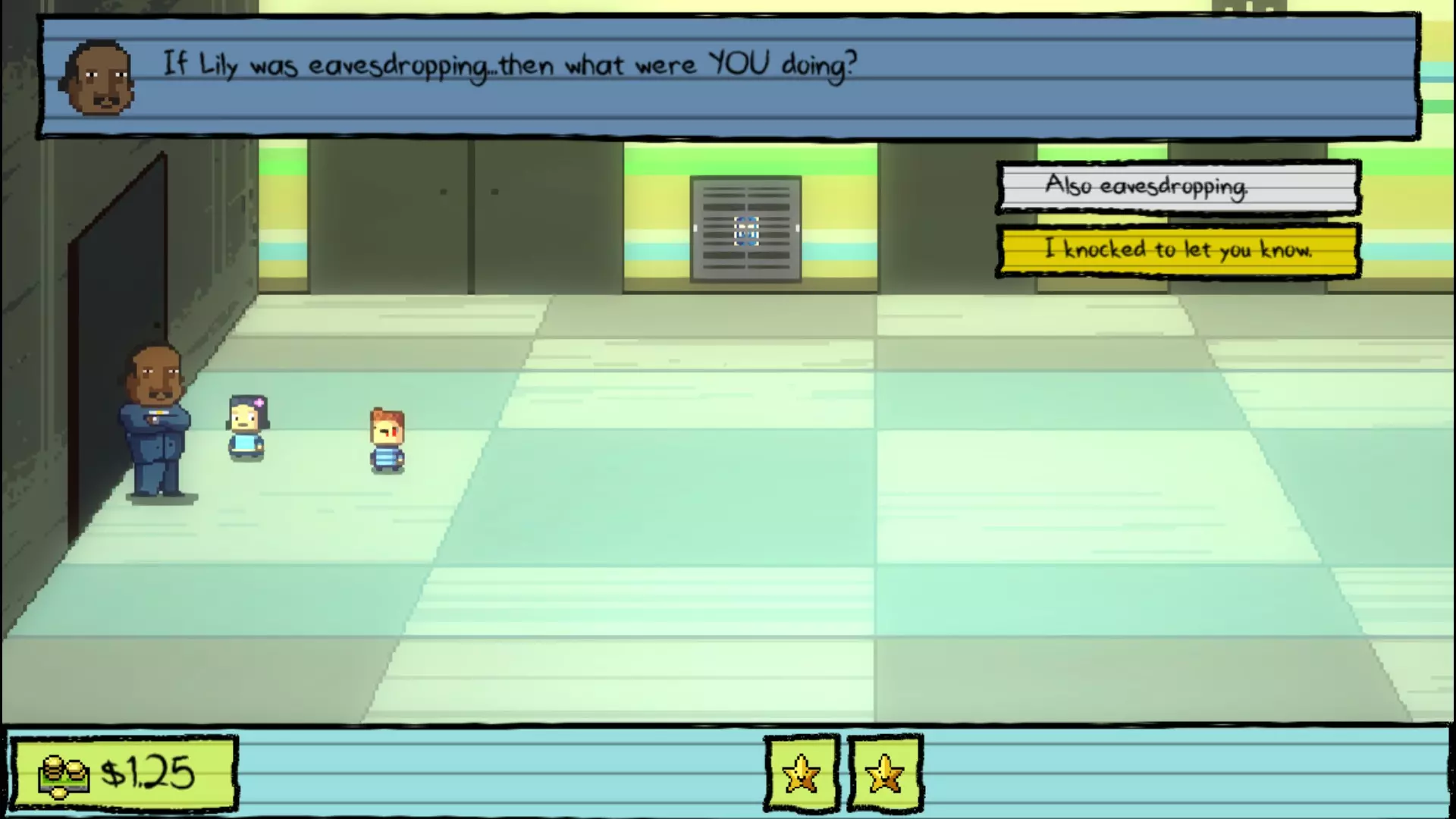 你会发现莉莉在校长办公室外偷听。敲他的门并告发她——莉莉很快就会被处理。