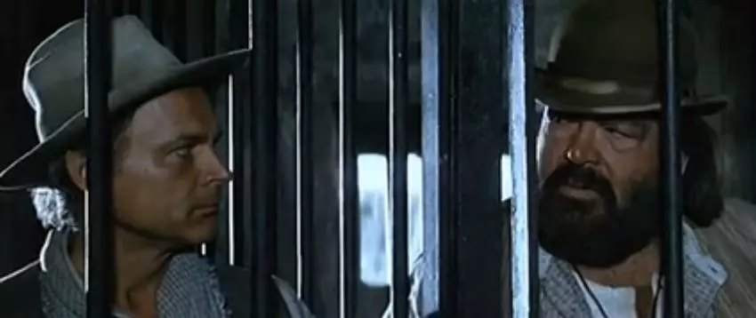 特伦斯·希尔与巴德·斯潘塞在他们最新电影《麻烦制造者》(1994)中的一个场景。 巴德·斯潘塞 卡罗·佩德索利(1929年10月31日—2016年6月27日),艺名巴德·斯潘塞,是意大利演员、职业游泳运动员和水球运动员。他因与长期电影搭档特伦斯·希尔合作的动作喜剧和意大利式西部片角色而闻名。这对搭档“获得了世界赞誉,并吸引了数百万观众走进影院”。斯潘塞和希尔共同出演、制作和执导了超过20部电影。 1967年,电影导演朱塞佩·科利齐向他提供了《上帝宽恕…我不!》中的一个角色。在片场,佩德索利遇到了马里奥·吉罗蒂(特伦斯·希尔)。尽管佩德索利曾于1959年在《汉尼拔》的片场见过吉罗蒂,但正是这次相遇让他们成为了电影搭档。电影导演要求两位演员改名,认为他们的原名听起来太有意大利味,不适合西部片:佩德索利选择了巴德·斯宾塞这个名字,其中“巴德”的灵感来自百威啤酒,“斯宾塞”则源于演员斯宾塞·屈塞。希尔的角色通常灵活且充满活力,而斯宾塞总是饰演“冷静、脾气暴躁的硬汉,却有着纯真孩童般的笑声和一颗金子般的心”。总的来说,希尔和斯宾塞合作了超过20部电影,其中包括(使用其最常见的美国片名)《上帝宽恕...我不宽恕!》。(1967年)、《王牌高手》(1968年)、《边城龙虎斗》(1969年)、《他们叫我三一》(1970年)、《三一仍是我的名字》(1971年)、《一路向前,伙伴们》(1972年)、《小心,我们疯了》(1974年)、《两个传教士》(1974年)、《霹雳双虎将》(1977年)、《奇谋妙计赌翻天》(1978年)、《我为河马狂》(1979年)、《谁找到朋友谁找到宝藏》(1981年)、《加油!》(1983年)、《双重麻烦》(1984年)、《迈阿密超级警察》(1985年)和《麻烦制造者》(1994年)。斯宾塞单独出演的电影包括《五人军队》(1969年)、《天使也吃豆子》(1973年)、《和平的第五天》(1970年)、《朋友,这能做到》(1972年)、《平底足》(1973年)、《雇佣兵》(1976年)、《他们叫他推土机》(1978年)、《警长与卫星小子》(1979年)、《事事皆非》(1980年)、《香蕉乔》(1982年)、《轰炸机》(1982年)和《超级魔术师》(1986年)。