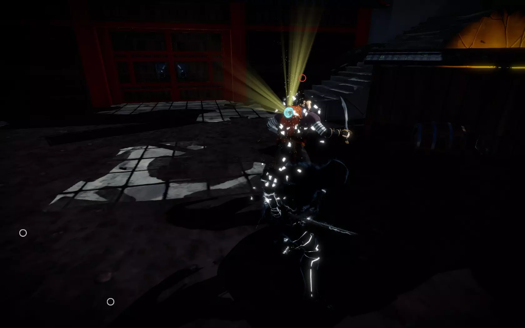 如何击败光(Hikaru) 注意事项: 最好在与光战斗前先解决掉手下,除非你像我一样是完美主义者,想要达成【Kami Seal】成就,那就像平时一样避开他们。 那些漂浮的光球会附着在你身上,几秒钟后引爆并消耗你的精华。如果有光球离你太近,你需要冲刺几米才能甩掉它,这会让你被发现,但甩掉后你可以进入最近的阴影中躲避监视。 如果你被发现,光会向你冲锋,这种情况下你需要传送到最近的阴影处来躲避光束。 第一阶段: 首先,你要把光引向左侧。在那边摧毁附近的宝珠,然后把他引到近处后,跳到该区域正上方的壁架上