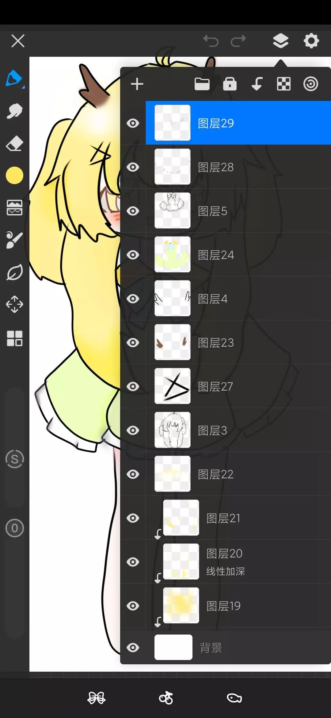 昨天呢也是在大家的提醒以后,把图层合并了一下,但是依旧只能创二十个图层,今晚我回家画的时候,意外发现又可以创图层了●▽●,然后也是经过我9981小时的磨练后,终…