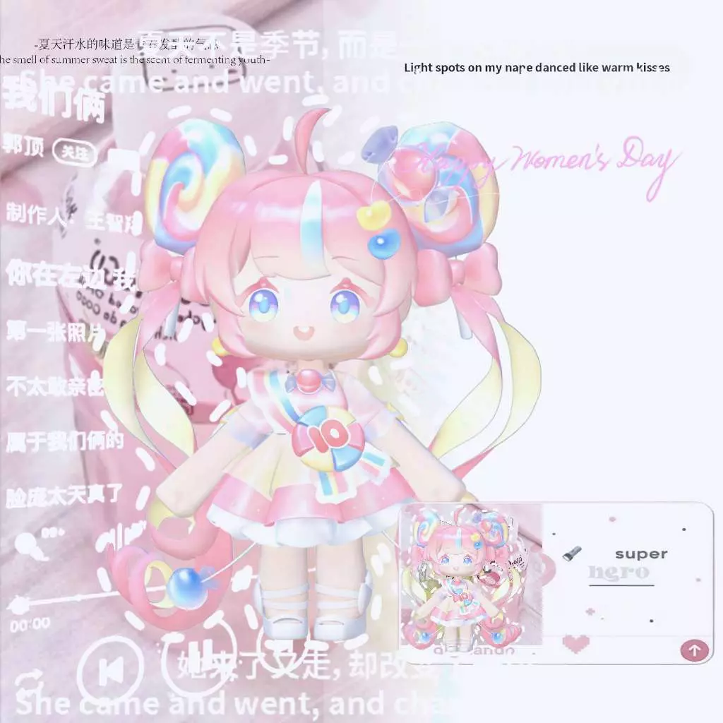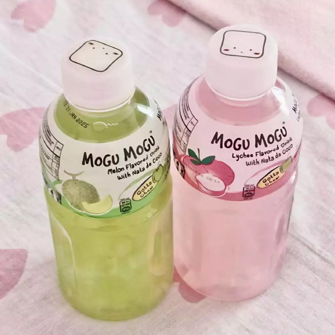 这是一篇迷你世界社区的图文帖,分享了充满春日氛围的迷你世界粉色系可爱角色美图,还搭配了MOGU MOGU品牌的两款果味饮品,整体风格甜美治愈,满是春天的气息。