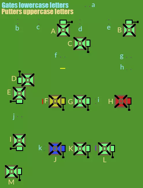 解决方案: 4门序列:将蓝色门安装在“j”处,紫色门安装在“f”处。将橙色头安装在“M”处,蓝色头安装在“E”处,红色头安装在“F”处。 这将打开红色推杆上带有一个门和一个头的门。 5门序列:将绿色门安装在“j”处,紫色门安装在“f”处,蓝色门安装在“c”处。将橙色头安装在“M”处,蓝色头安装在“E”处,紫色头安装在“F”处。 这将打开金色推杆上带有两个头的门。 6门序列:将紫色门安装在“j”处,黄色门安装在“k”处,红色门安装在“f”处,蓝色门安装在“c”处,绿色门安装在“b”处。将紫色头安装在“M”处,橙色头安装在“D”处,蓝色头安装在“I”处,红色头安装在“J”处,紫色头安装在“F”处。 在压力下工作
