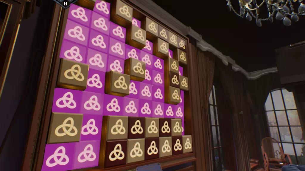 使用钥匙打开工坊内的两个上锁架子。 根据谜题盒的提示给人体模型穿戴衣物(正确的布料在盒子里),布料分别位于工坊墙上高处、人体模型左侧以及工坊储藏室的窗框处。