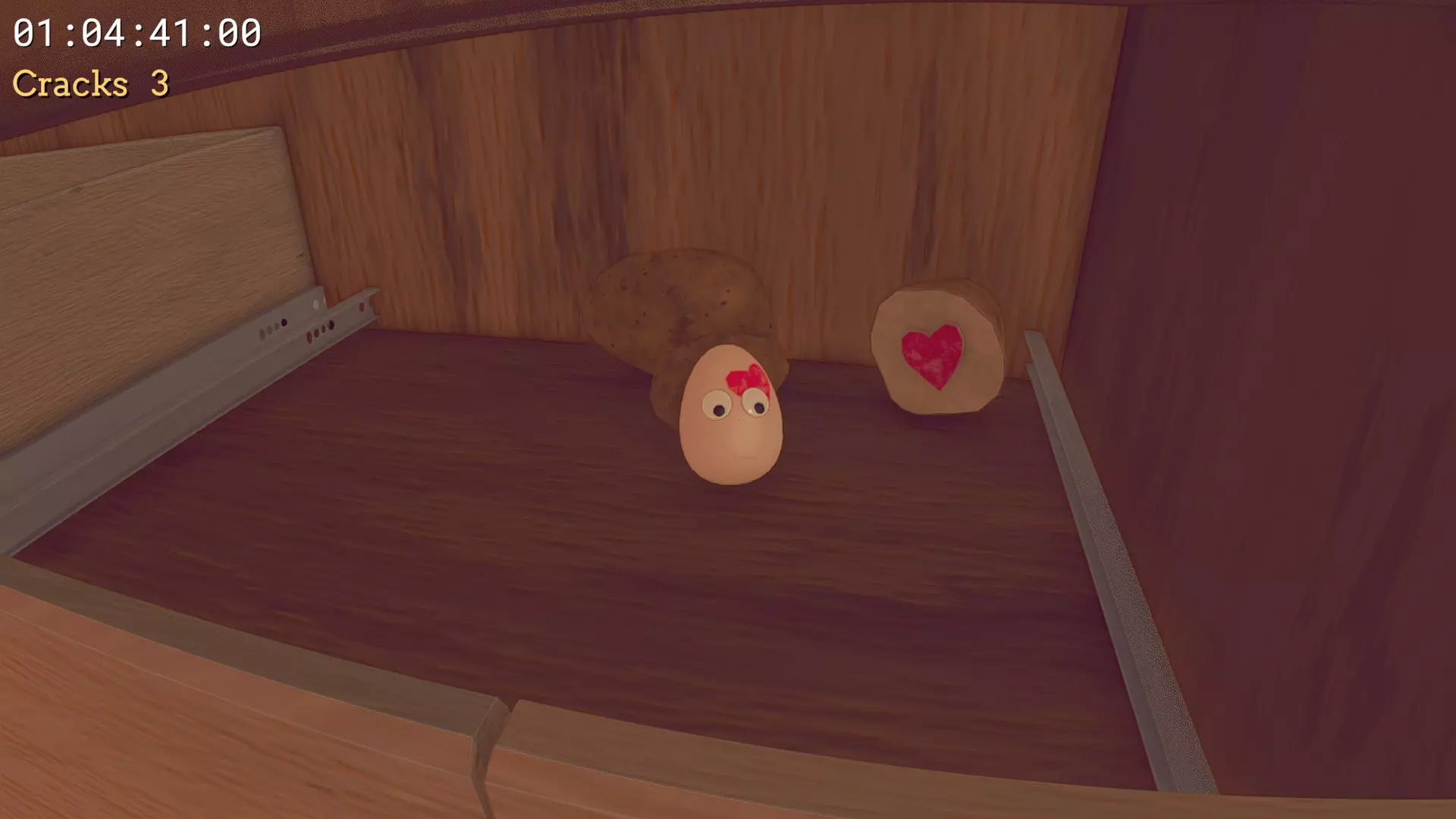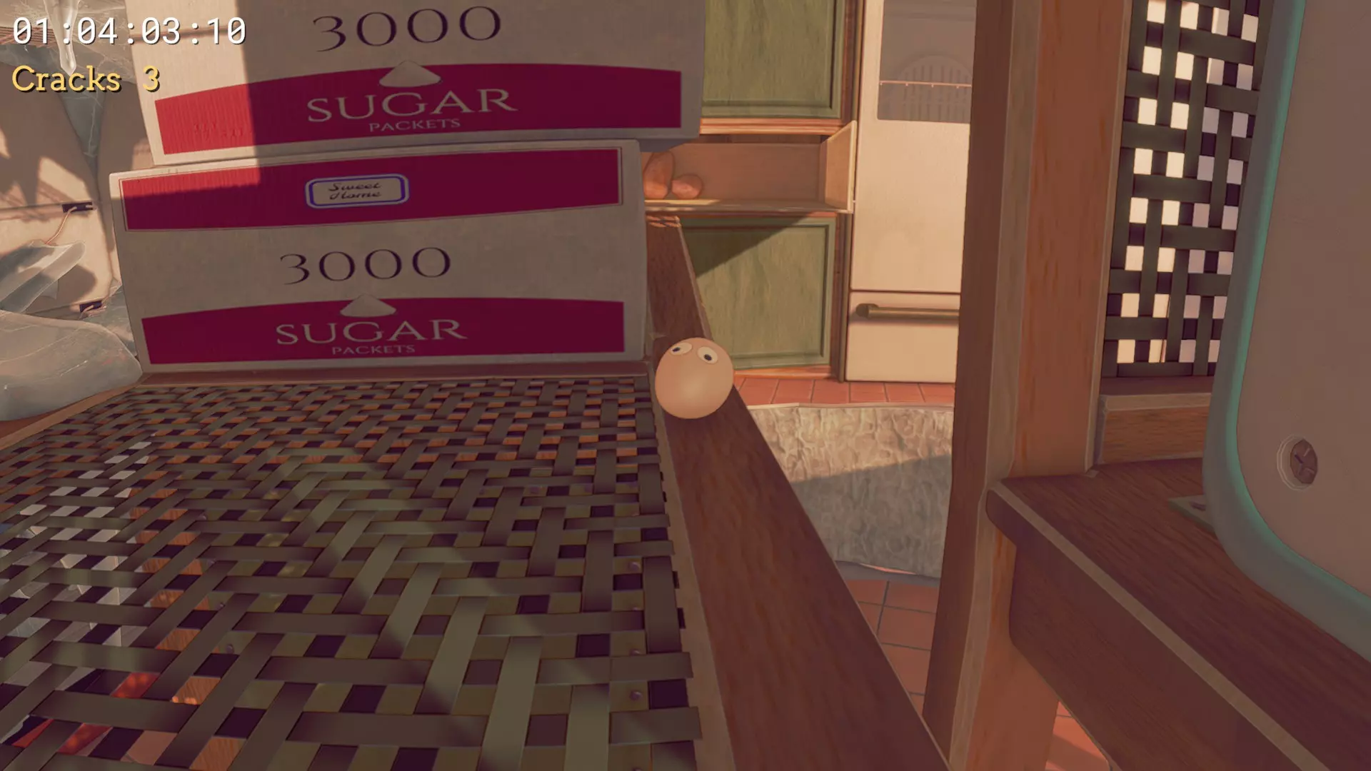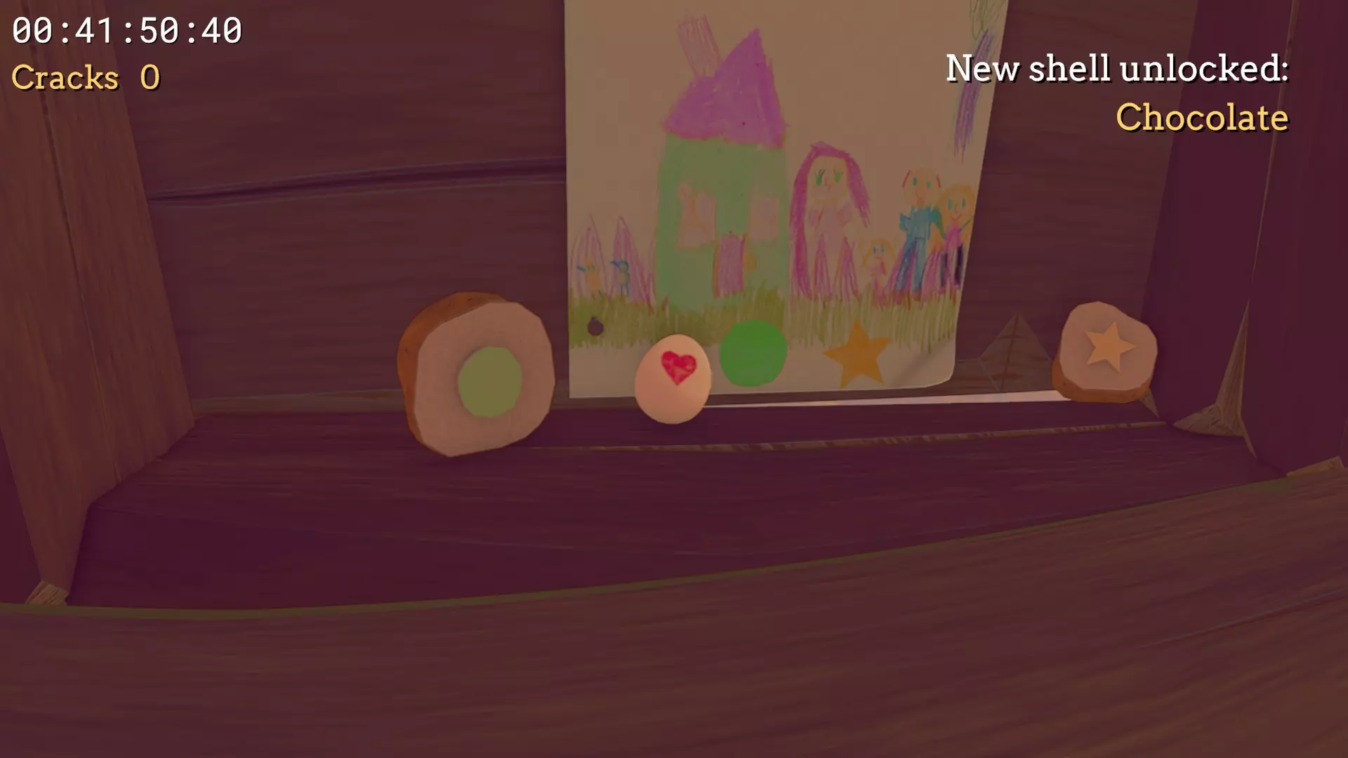 厨房 心形印章 - 在冷冻区之后,当你坐在第一张椅子上时,利用它到达橱柜。橱柜后方有一道裂缝,你可以从右侧跳过去,在那里能看到你的印章。将它带到最后一只鸡之前的顶层区域,在该区域的地面层,你会看到一幅儿童画,把心形印章添加到画上。