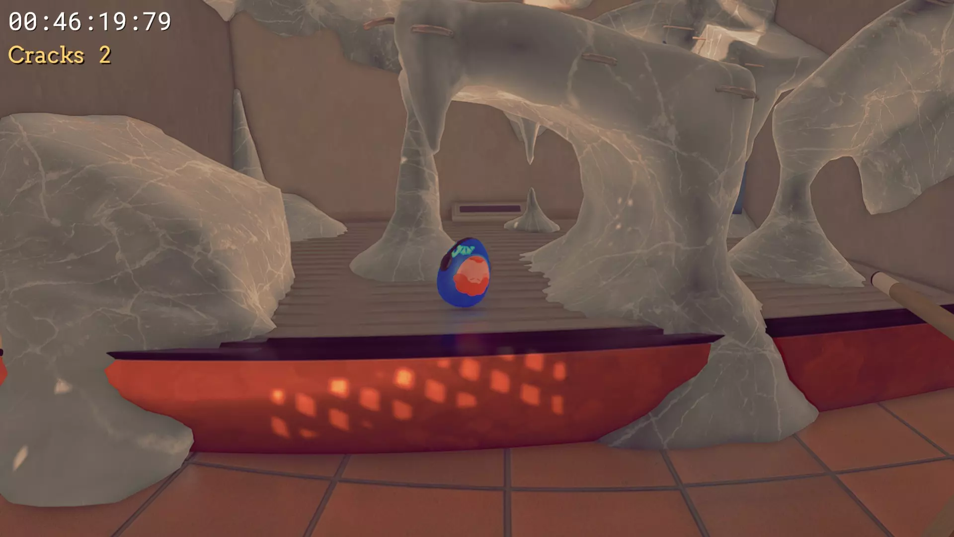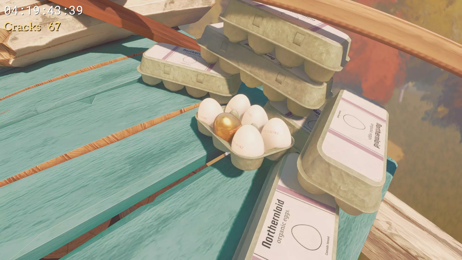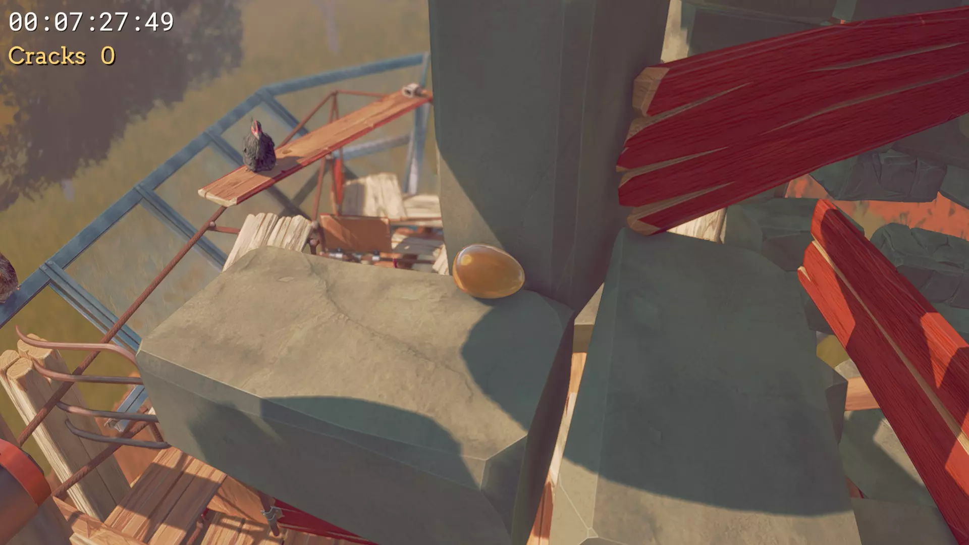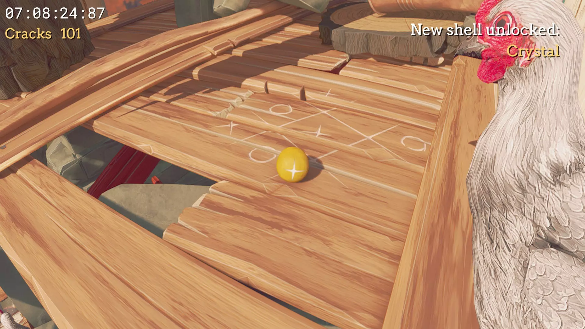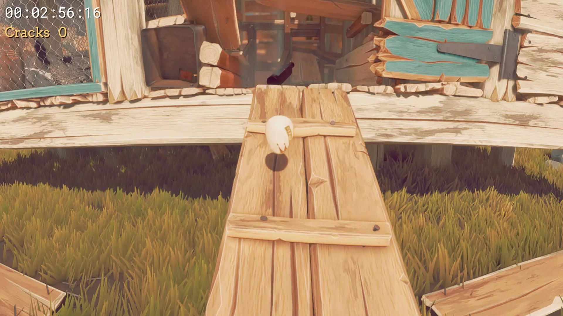 #1 鸡蛋印记 - 在鸡窝下方,将它带到#1母鸡位置。你可以从通往那里的木板上使用小跳到达。