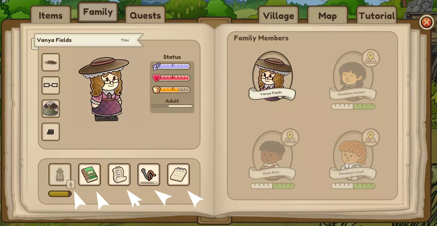 你无需升级房屋或床铺即可结婚生子。 与村庄居民交朋友,并将在灯塔购买的花束送给他们。 他们通常会要求你完成一项任务,以达到与他们家人中某人的特定友谊等级。 一旦达成,再次与他们交谈时,系统会要求你选择一个“约会”地点,你可以选择日期和地点。这实际上是你求婚的机会,所以确保在约会时准备好戒指。最好是准备一枚好戒指,因为存在被拒绝的可能。如果你愿意,可以在约会前存档。在寻找伴侣时,你好感度最高的两位单身人士不会随机与其他村民结婚。至于其他单身村民,在午夜时分游戏会有一定几率为他们配对。 你的伴侣会住在你的家中,你可以在地图上追踪其位置(在家庭页面激活)。如果你希望能随时找到木匠、铁匠或医生帮忙,或许可以考虑与他们中的一人结婚! 一旦结婚,如果你在午夜前入睡,每晚将有四分之一的几率触发怀孕。你可以通过点击婴儿来照顾他。如果疏于照顾,你的孩子可能会养成不良特质。孩子们默认会去上学,但你也可以和任何职业的师傅交谈,从而在那里学习技能。你可以在菜单的【家庭】选项卡下拉菜单中修改家里任何人白天的活动——在这里选择【农场帮手】来帮忙打理农场。 你还可以使用从镇长那里购买的收养文书来收养孤儿。要做到这一点,你需要找到没有父母的孩子(你可以在【村庄】选项卡中查看,或者直接和孩子们交谈)。这种情况通常只在一波疾病之后发生。只要你家里有空间,当你和他们交谈时,收养选项就会以黄色显示在菜单顶部。你的家中最多可以有其他三名家庭成员,即一名配偶和两名子女。当子女长大后,你可以选择将他们赶出家门(他们会住在村子里),此时你可以再生育子女,直到家中再次满员。 你可以在裁缝店选择裁缝选项来修改全家人的衣服/发型,每个人都有单独的标签页。 预期寿命