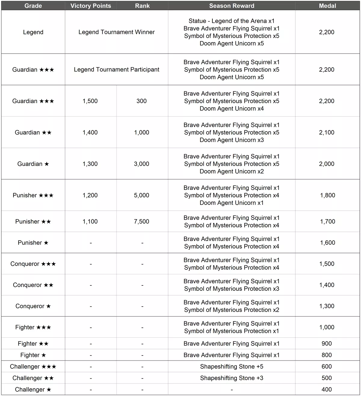 《魔灵召唤:天空之役》更新内容 1. 战斗通知 - 重复战斗和侦查战斗通知现在将显示在公会战研究和防守阵容测试界面。 2. 【世界竞技场】更新 - 世界竞技场将从4月13日开始的第37赛季起进行更新。 - 以下是第37赛季的主要变化: ================================= - 世界竞技场第37赛季时间安排 :4月13日00:00-6月27日00:00(PDT) - 世界竞技场匹配优化 :在【惩罚者★-传说】段位范围内,匹配将优化为为您匹配胜利点数更相近的对手。 :在【挑战者★-斗士★★★】段位范围内,匹配范围已扩大,以实现更快的匹配速度。- 在【惩罚者★】段位中,战斗失败后胜利点数将不再降至800以下。 - 【征服者】段位区间内晋升所需的胜利勋章数量已调整。
