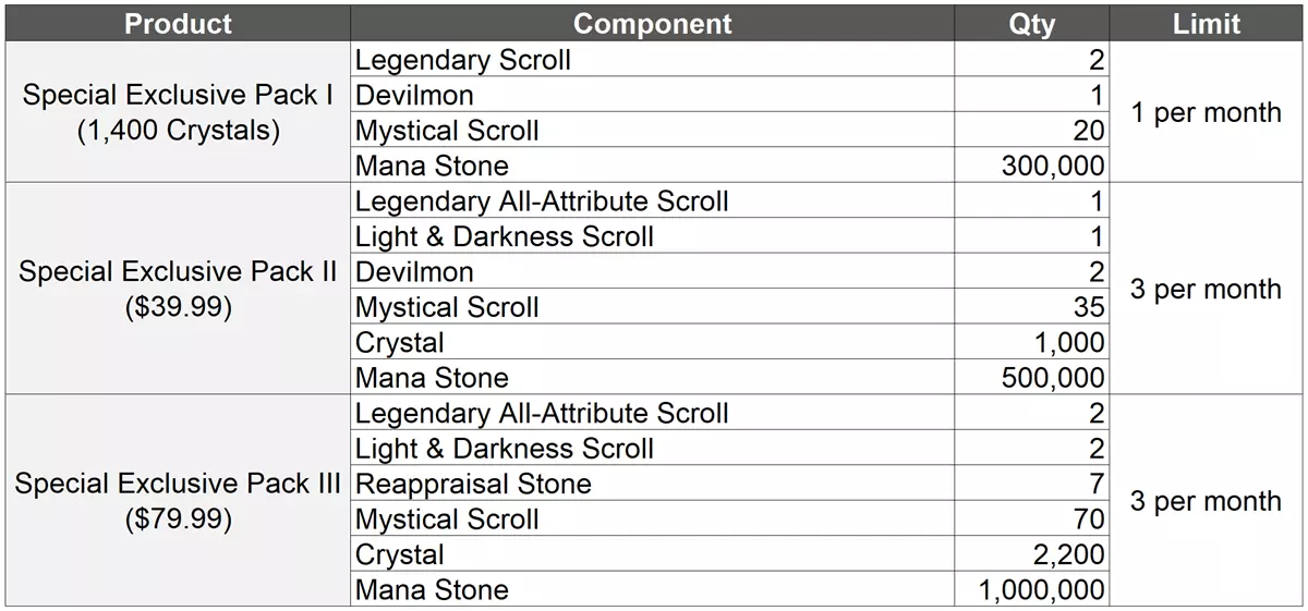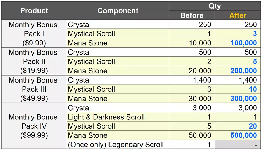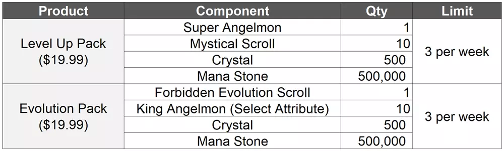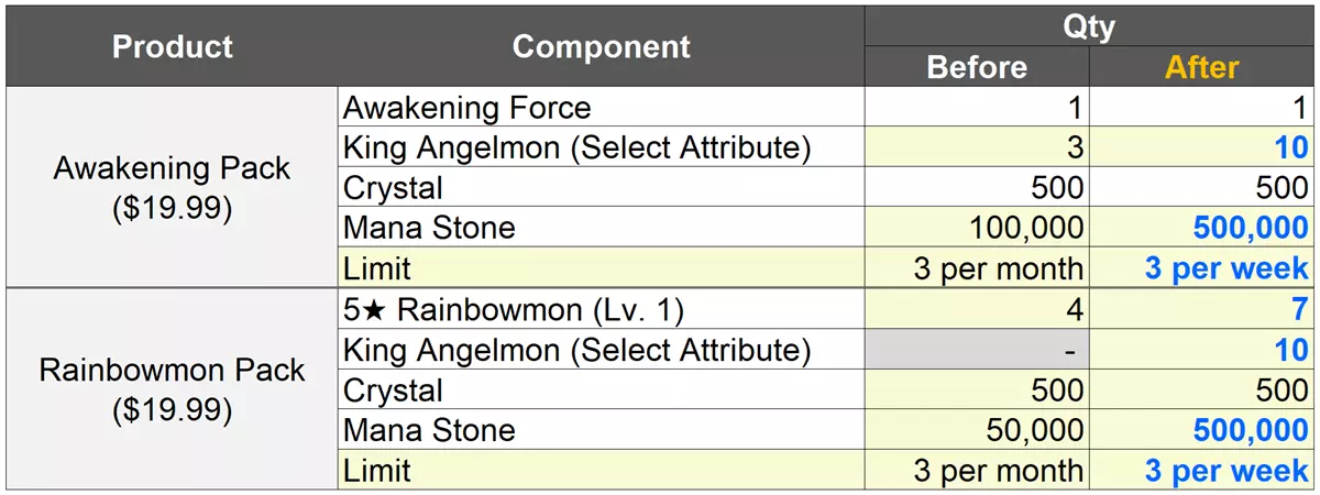 - 全新商品 :【建议 > 成长】觉醒礼包和彩虹怪礼包已优化。