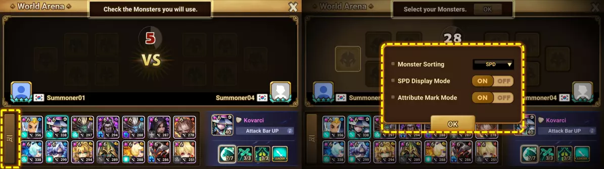 ▶【挑战战斗】魔灵排序与显示设置 - 现在可以按属性或攻击速度对魔灵进行排序,并可切换攻击速度和属性的显示模式。