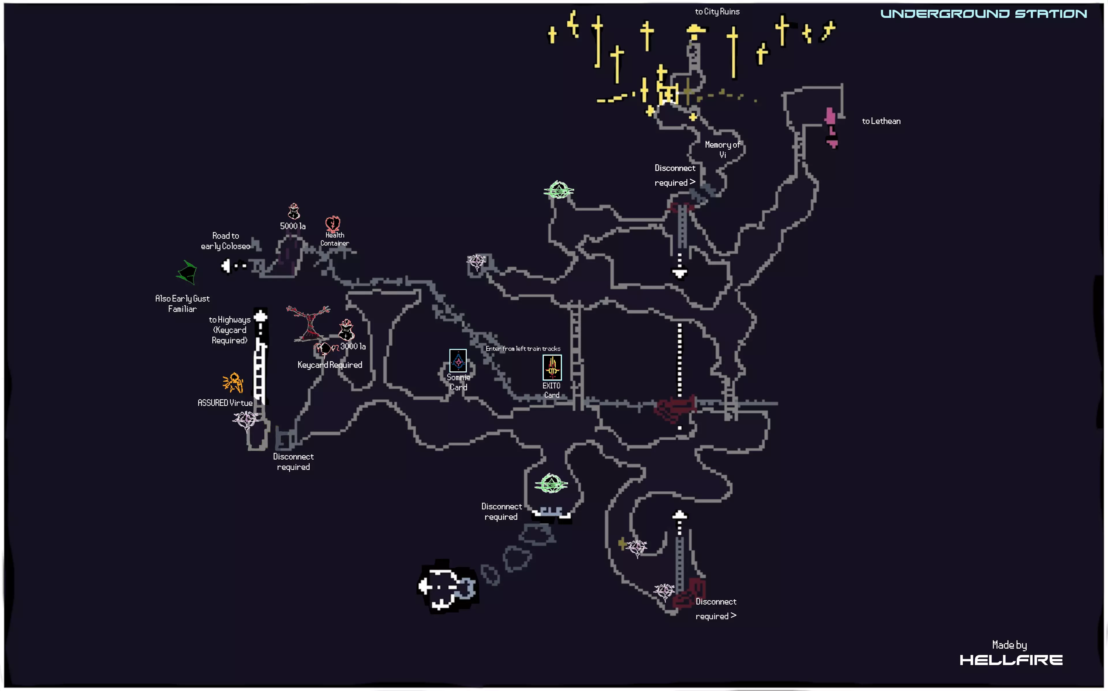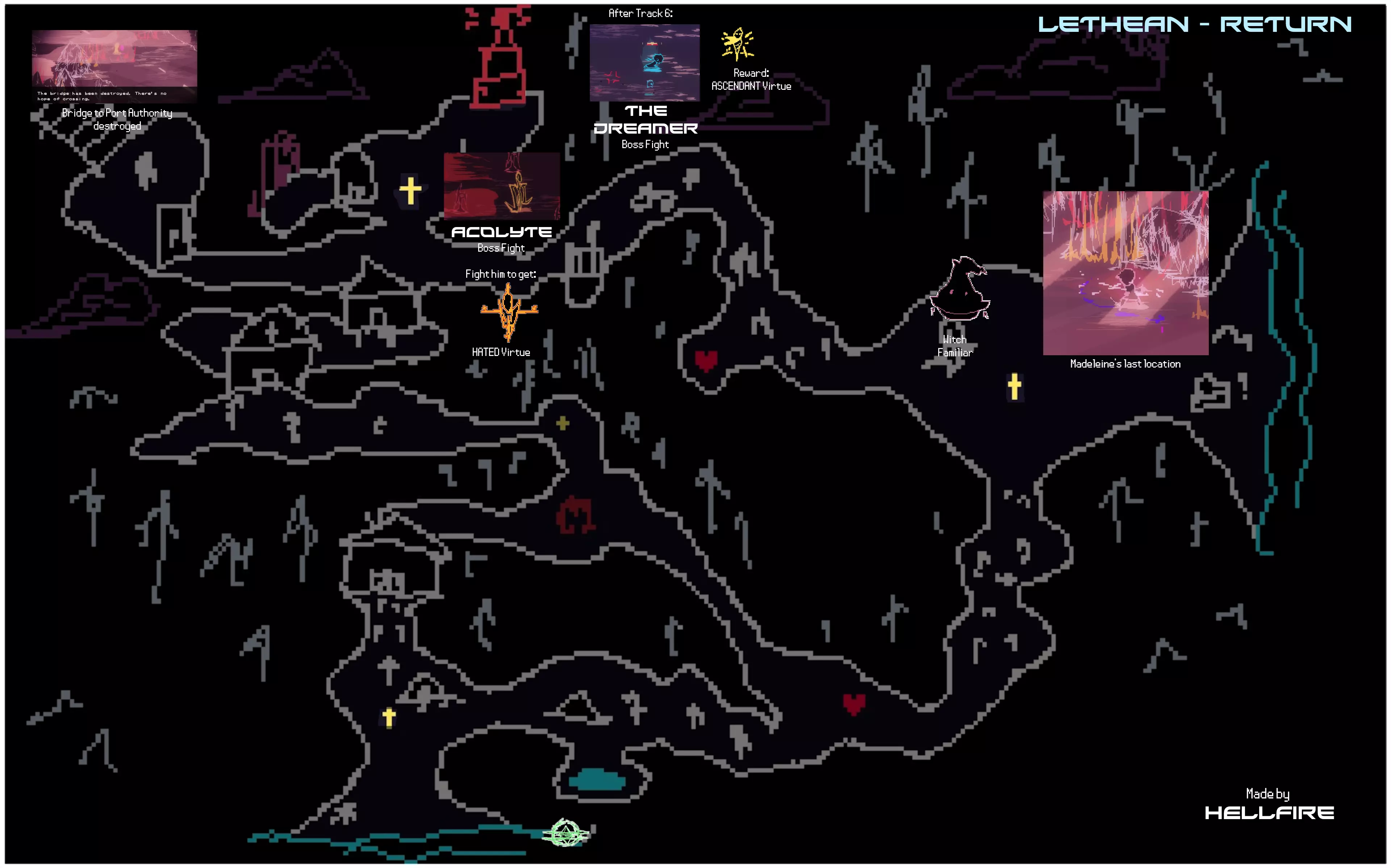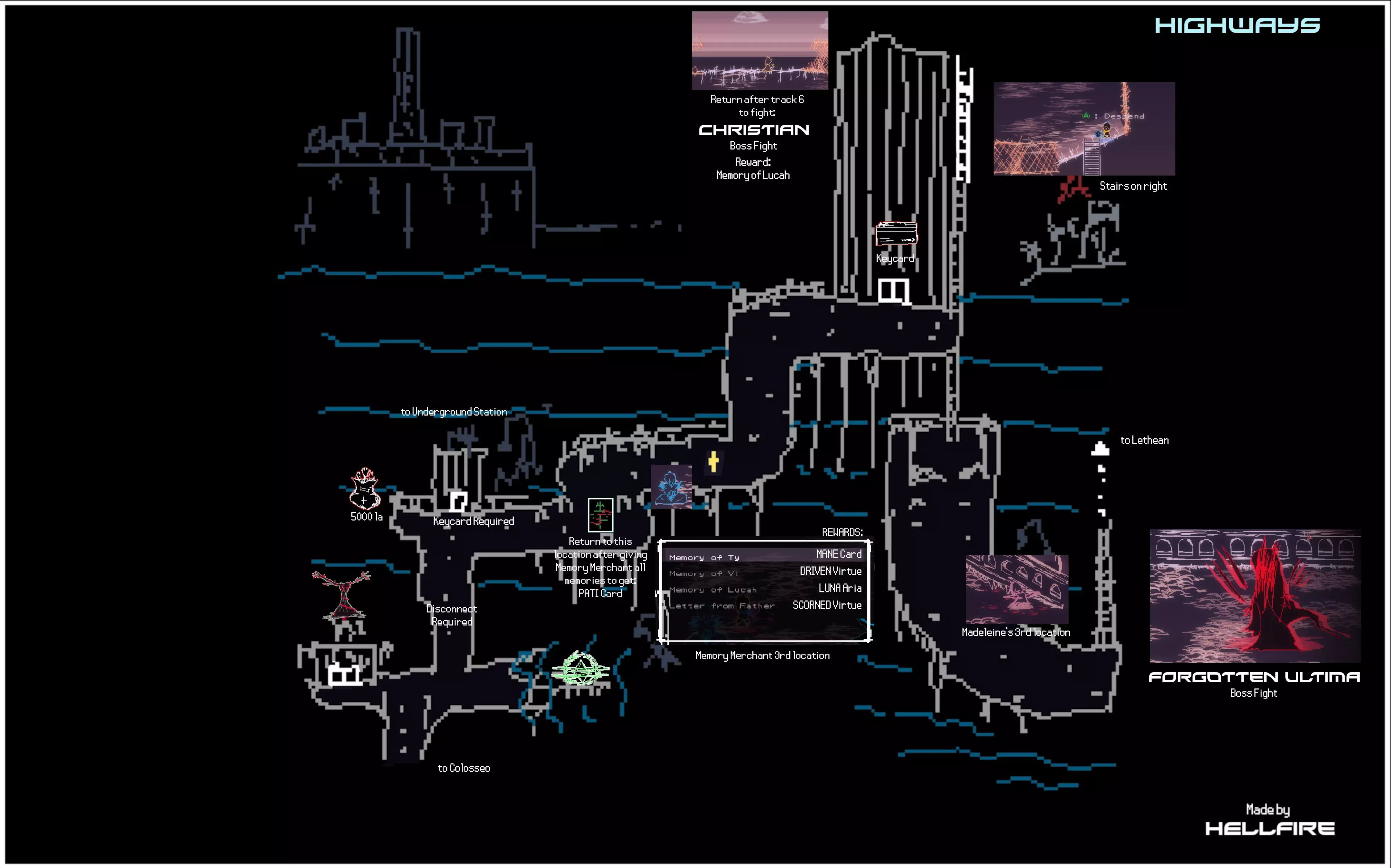 本指南旨在收集《梦碎之境》中所有物品的信息,同时也想列出所有咏叹调共鸣。目前本指南仍在制作中,因此还有许多信息缺失。 简介 本指南包含游戏中所有美德、咏叹调、伙伴、祈祷卡和记忆的相关信息。 你可以在地图上查看所有物品的位置。指南中还包含任务及其推进方式的信息。 本指南未包含解锁【Haunted】成就所需的所有敌人信息,但如果你完成所有任务并通关游戏,该成就将会解锁。 请注意,本指南包含游戏区域的全部剧透。尽管游戏本身并不侧重剧情,但其中展示了关于 Boss 的信息,可能会通过画面内容剧透游戏。 初始阶段 以下是游戏初始阶段即可获得的物品列表以及地图相关琐事。 初始可用 SOL Aria 激光伙伴 可按指令发射强力激光。 美德 不屈 [1 VP] 每场战斗可承受一次致命伤害而不死。通过【回溯】或完全治疗重置效果。 教程结束后: 美德 宣泄 [2 VP] 受到伤害后的短时间内,造成伤害可恢复失去的生命值。 克里斯蒂安的记忆 地图上的常见物品