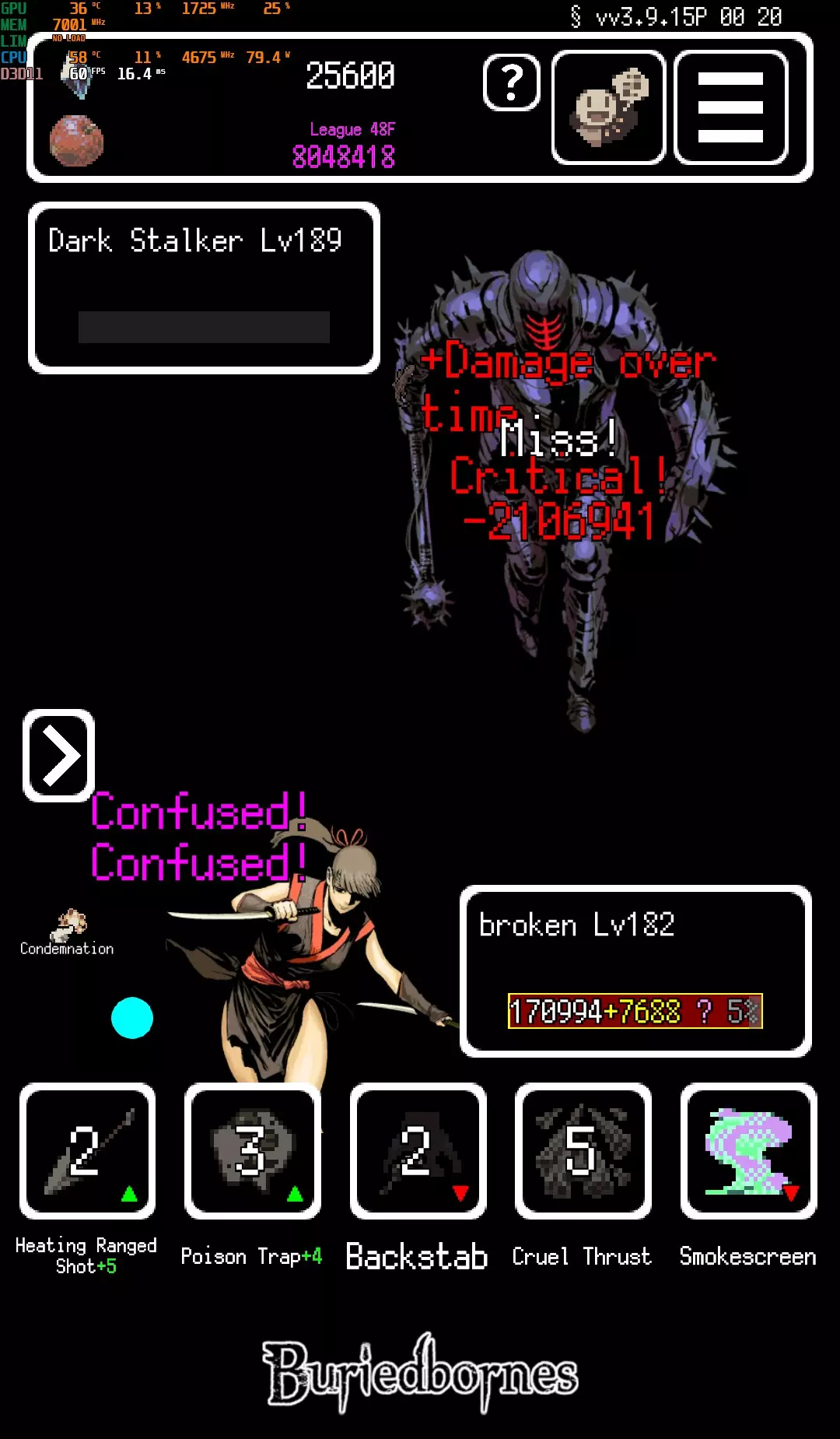 一个最强职业流派指南 需求与说明 1. 选择【女忍者】职业(需2000魂石)。 2. 获取并装备【兴衰】、【反应护盾】、【镜像】、【避陷阱】、【狂乱】(可根据喜好将【反应护盾】替换为其他效果)。 3. 获取【低温契约】(包含【不稳定进化】=生命值等于敏捷值;【残影+2】=闪避时获得无敌效果;【追踪】=忽略对手的闪避和格挡),可在商店花费2000枯叶购买。 此流派为纯敏捷加点,因此需将智力系技能替换为敏捷系技能。 核心属性很简单,只需提升生命值和护盾值。生命值越高,造成的伤害就越离谱(仅在拥有【不稳定进化】时生效)。 忍者的【烟雾弹】会为你提供闪避(以触发【残影+2】的无敌效果)和暴击。 【狂怒】能使你的伤害和生命值翻倍,从而最大化整体伤害;只要你的护盾仍在,【兴衰】就能进一步增幅效果。 【镜像】可防止你被反射伤害击杀,【陷阱闪避】能避免最大生命值降低和属性衰减。 由于你拥有95%的闪避率加上无敌效果,【狂怒】带来的混乱状态不会造成问题。 暴击时你的伤害不受伤害上限限制(仍需【突破极限】来打破9999生命值上限,或者可以使用【生命强化】),但【突破极限】依然至关重要。只要提升最大生命值和护盾,即使没有传说装备也能顺利通关。 切勿误选任何带有灵体技能的装备,否则生命值会被设为1。 不过要是能获得神威(Kamui),你就能变得无比强大(敏捷+、最大生命值+、突破上限+2)。 效果 你的女忍者(Kunoichi)能轻松造成成百上千万的伤害,同时规避所有伤害。由于女忍者已完全处于100%混乱状态,基本上角色会自动战斗,你只需选择房间即可。 即使没有不稳定进化(Erratic Evolution),这个build依然相当强力。因为只要敏捷足够高,狂怒(Frenzy)和兴衰(Rise and Fall)就能提供巨额伤害。