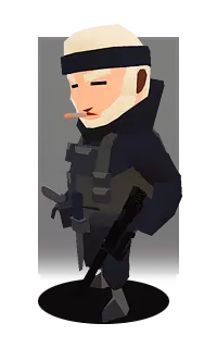 他的主武器是一把特殊的刀。这把刀在正确的位置下可以瞬间杀死任何人。 他的副武器是一把带消音器的手枪。 他携带一枚用于近距离战斗的手榴弹。 【红队】破坏者 我们的第三名队员是破坏者。