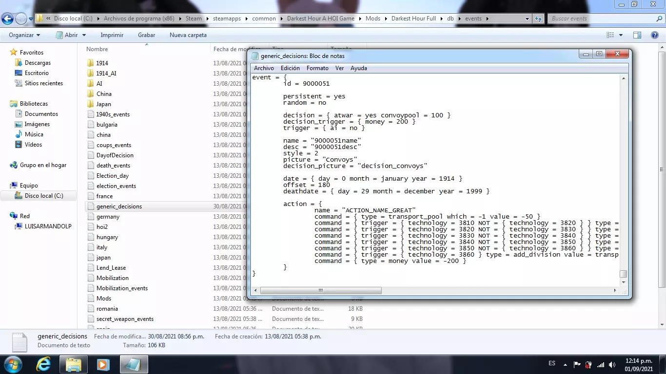 本指南将介绍如何修改事件以优化你的游戏体验。 简介 大家好,希望大家都过得愉快。今天我们将学习如何创建能在游戏中帮助我们并让体验更愉悦的事件。需要强调的是,大部分内容来源于相关游戏资料,但我也创建了自己的事件,其中包括对旅级单位的修改。 1. 新事件的存放位置 首先,我们要找到游戏的保存位置,默认路径为: C: Program Files (x86) Steam steamapps common Darkest Hour A HOI Game 然后选择“Mods”文件夹。
